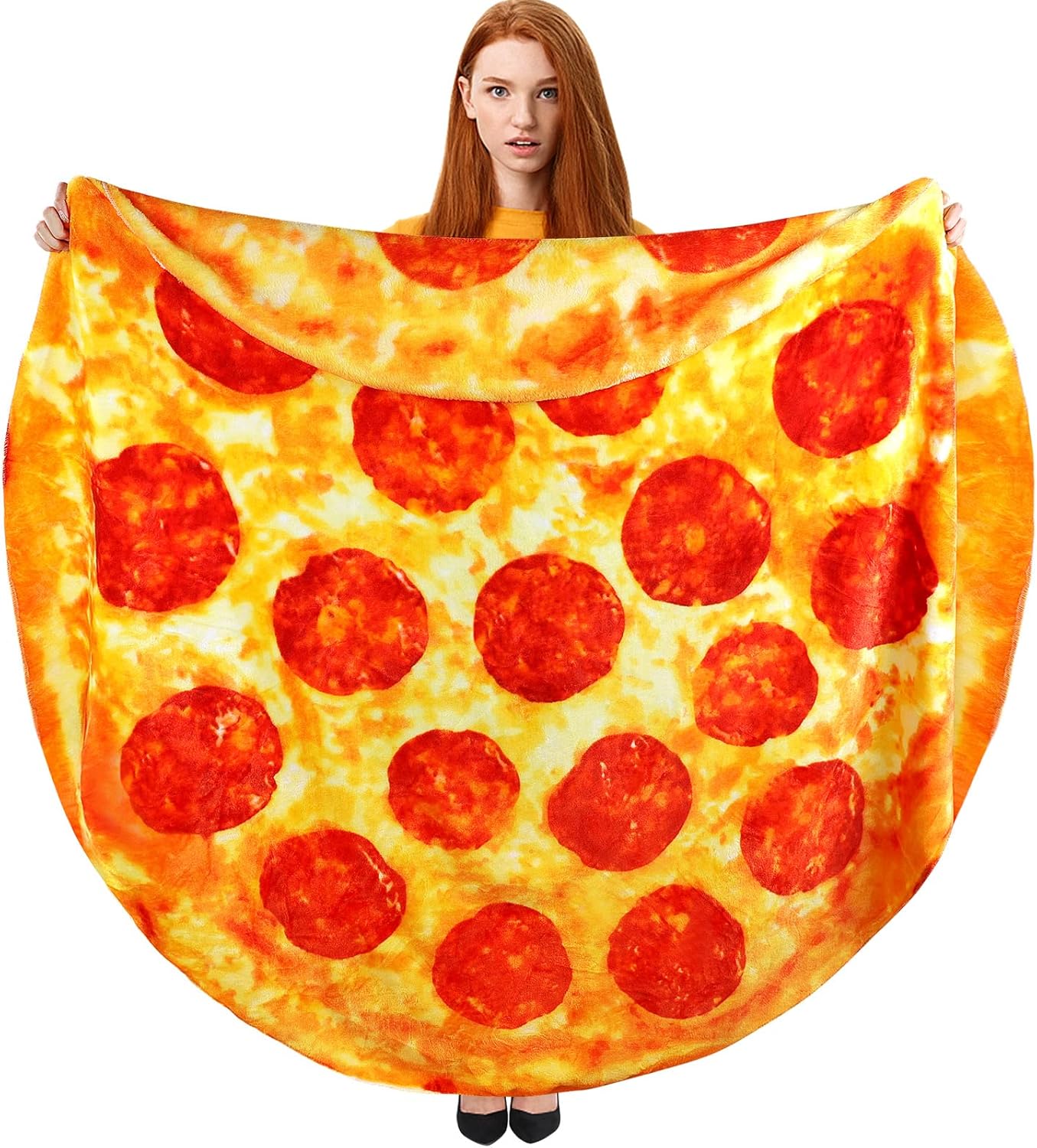 - Comfortable soft pizza blanket: This round cute blanket features a double-sided print design, the fabric is premium flannel, a realistic pizza pattern, wraps you into a lovely roll-in pizza, perfect for your indoor, outdoor and travel used in.