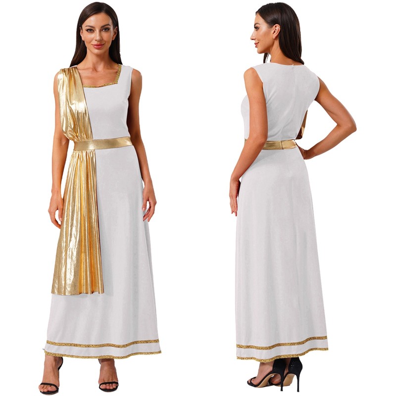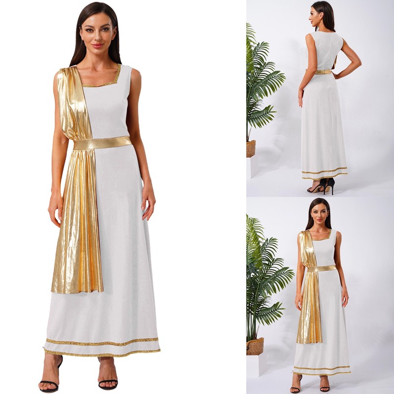 The metallic shiny drape creates a flowing and elegant effect, similar to the ancient Greek and Roman style, which is very trendy and can bring a sense of historical charm.