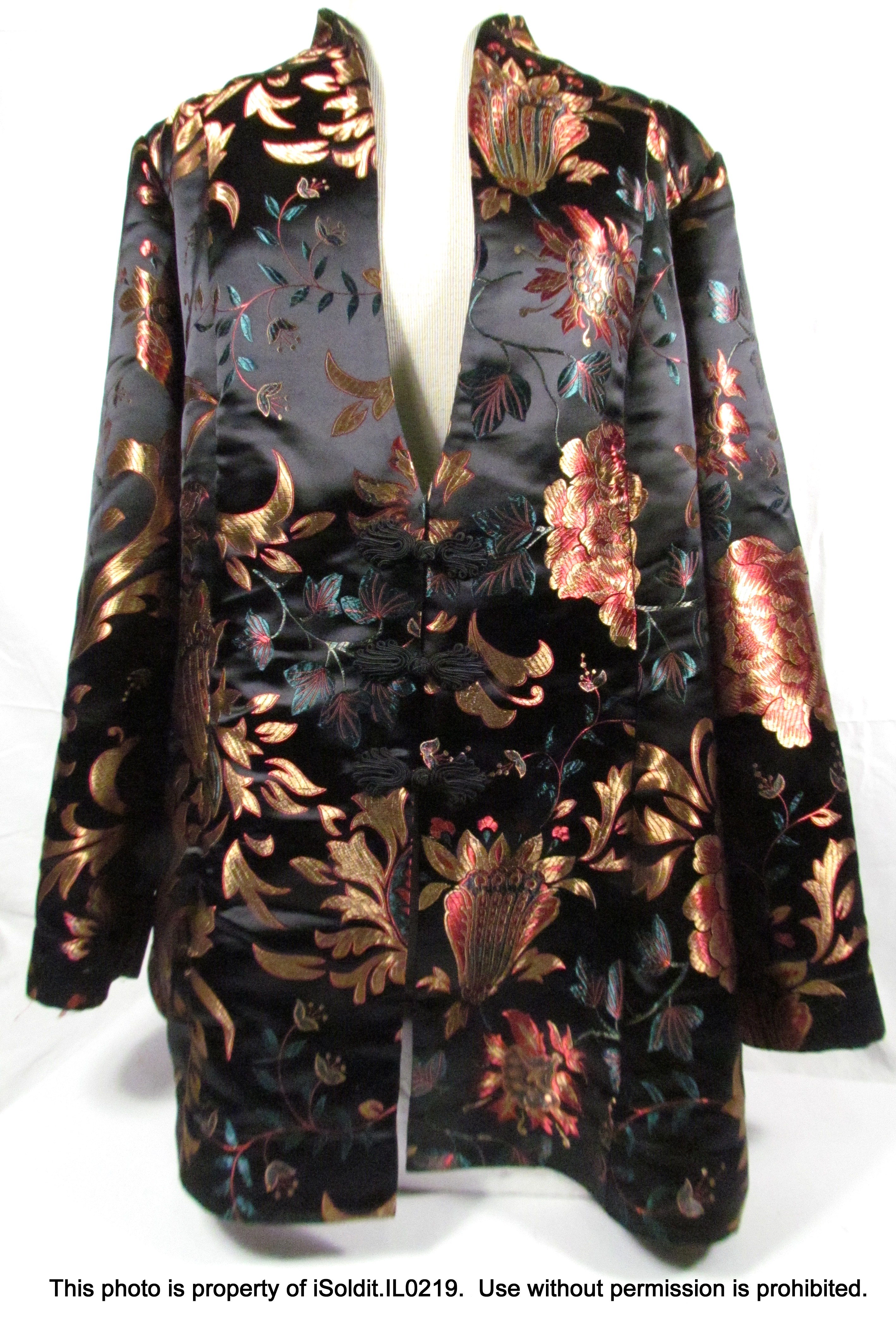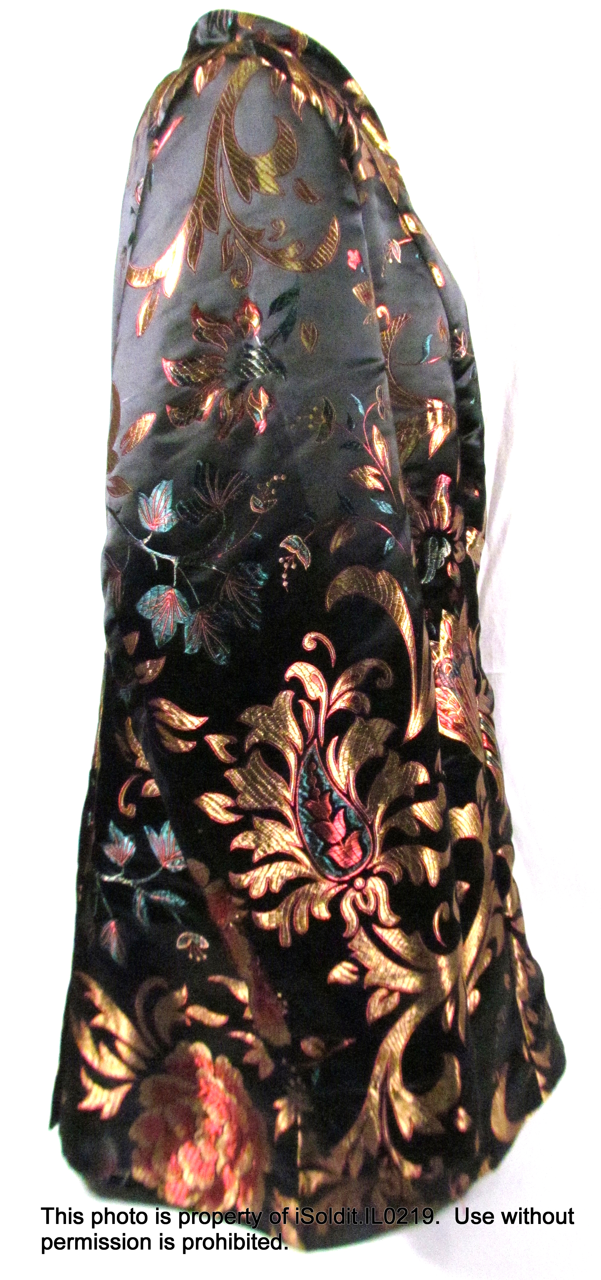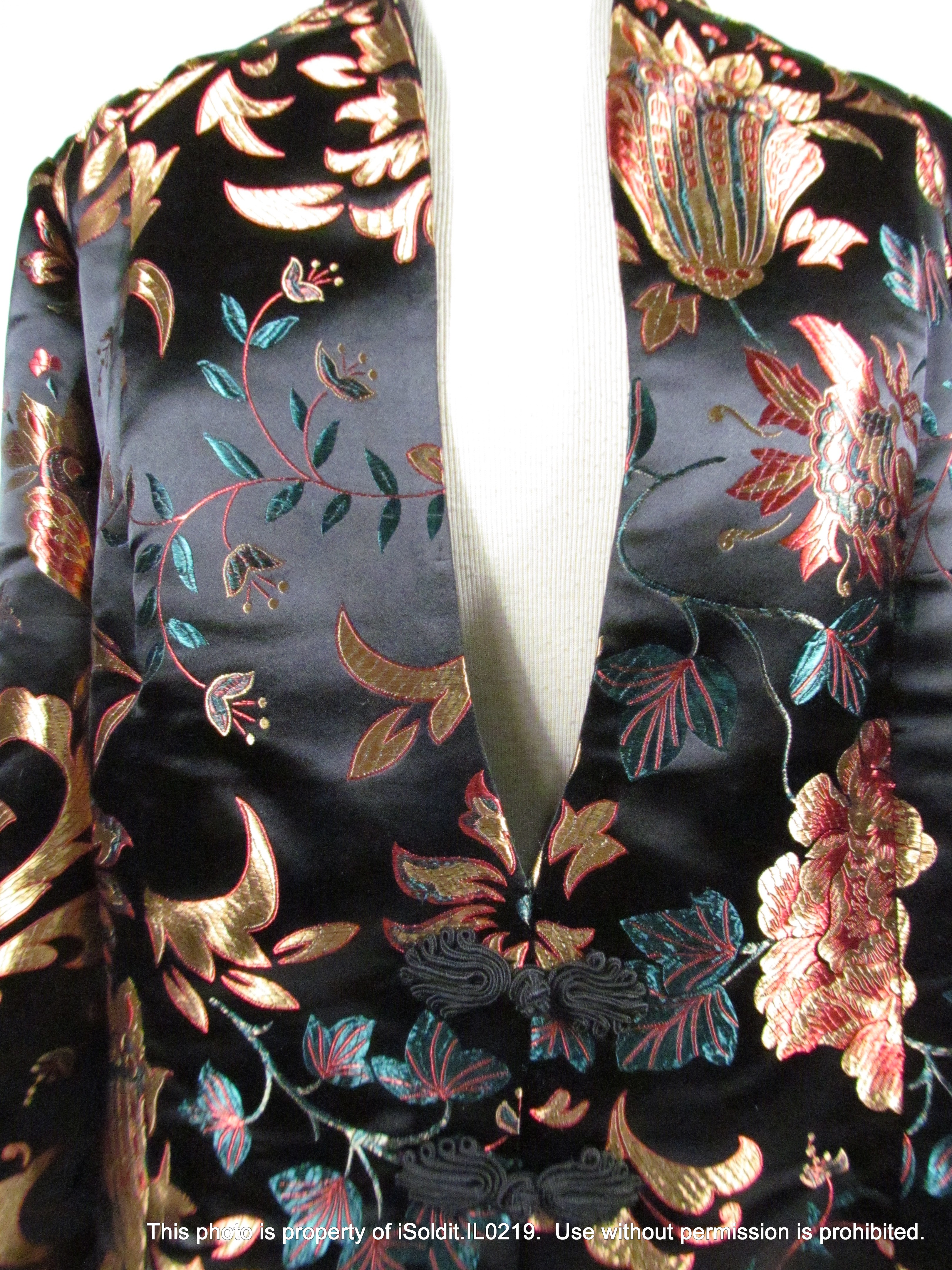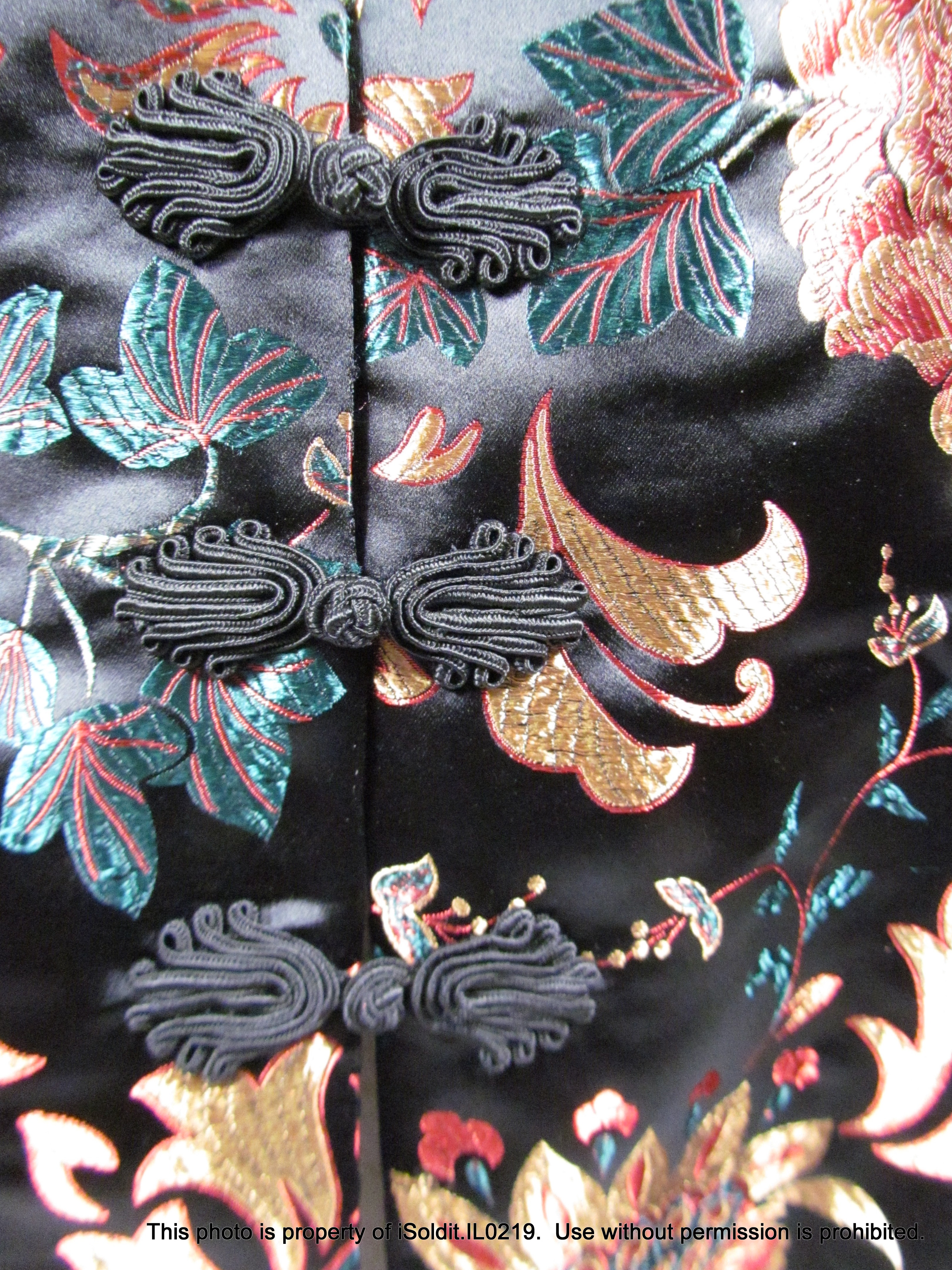 For sale here is a WOMENS ELEGANT SUIT JACKET / BLAZER from Soft Surroundings. Pre-owned, item is in excellent condition. It has a floral faux-silk style, soft and shimmery, with three front knot buttons. Size 2XL, chest is 53", sleeve is 25", length is 31". Perfect for winter events ahead! Thank you for your interest!