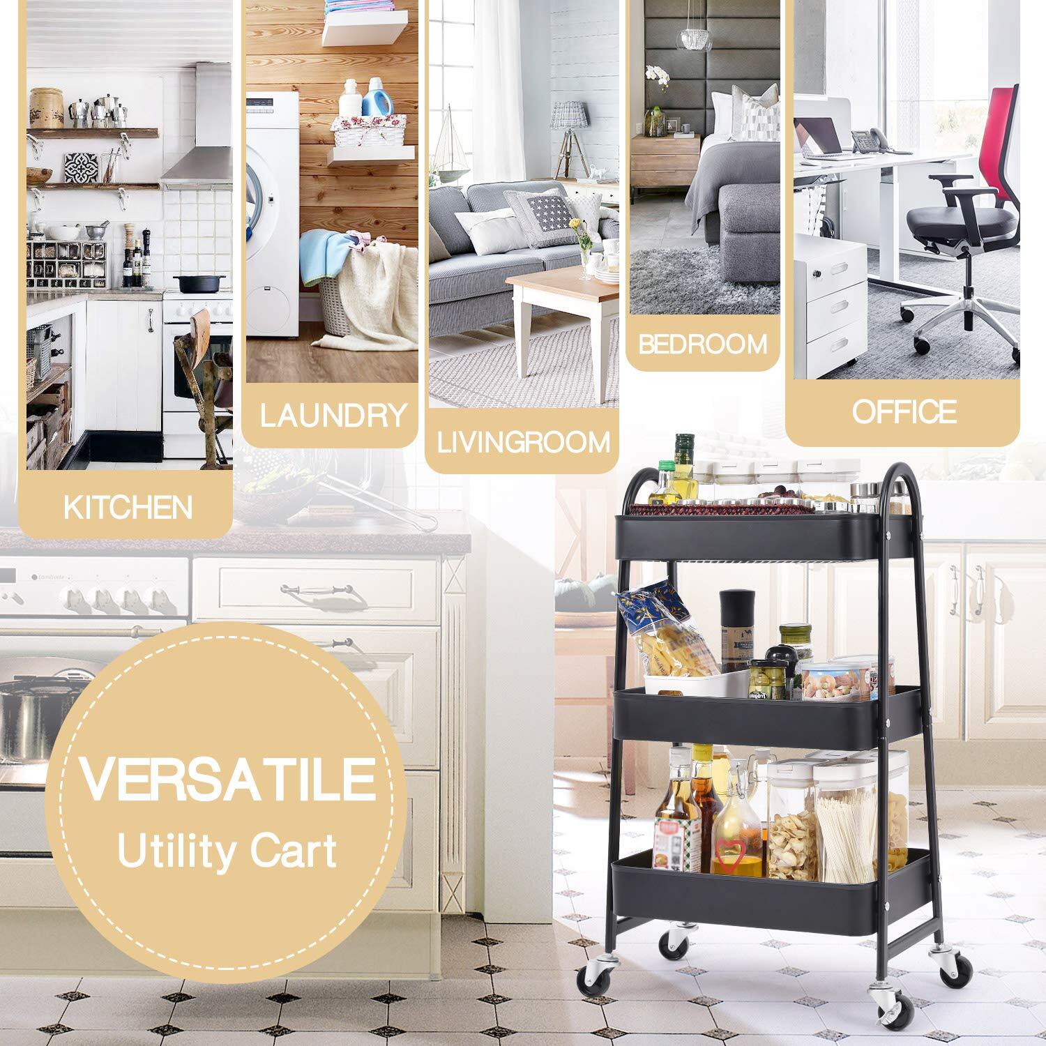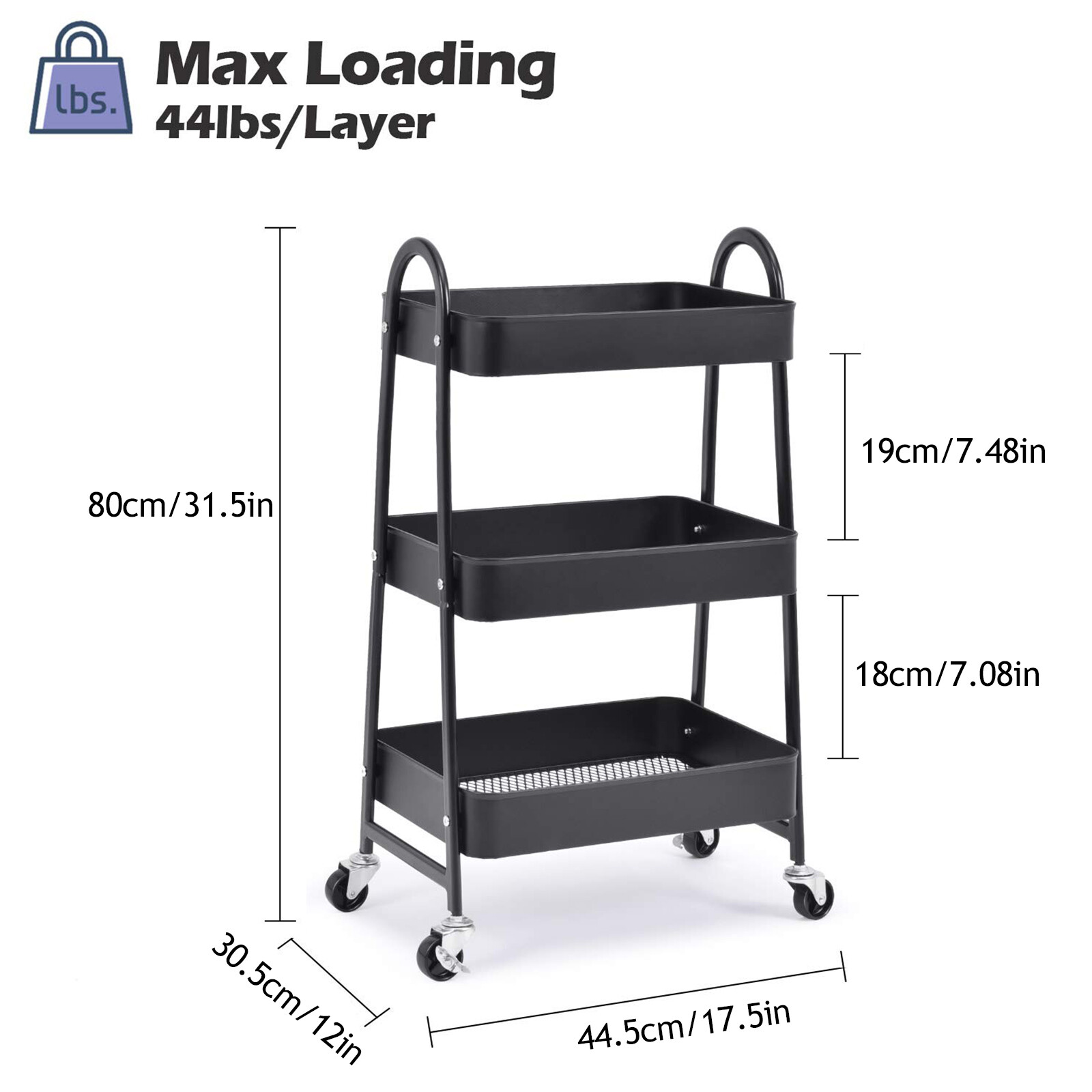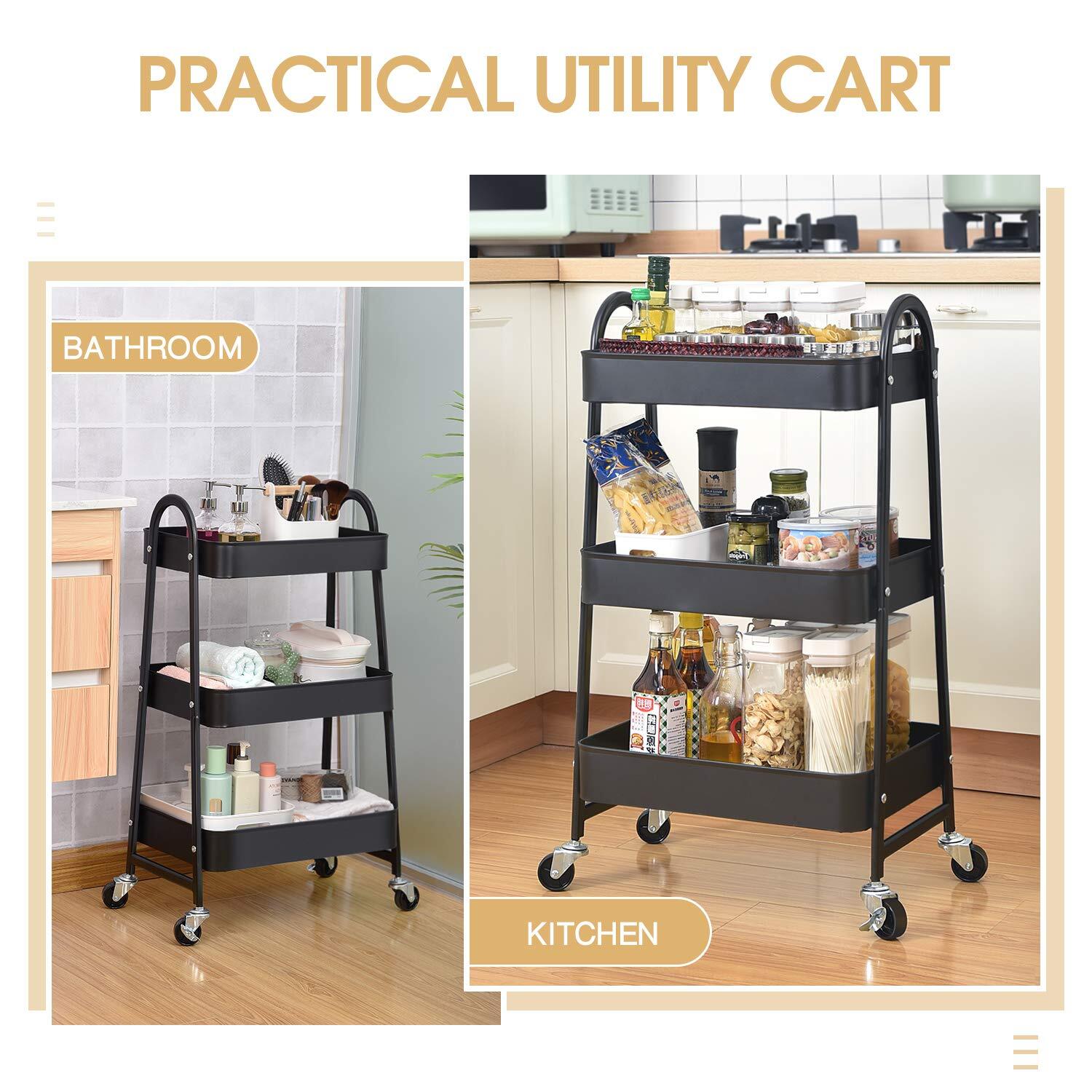 Multifunctional Rolling Cart: This 3 tier rolling cart is designed to make things organized , which can be placed in kitchen, bathroom, laundry room, office and many other places. You can use the utility cart to store spices, cosmetics, toiletries, books, snacks, etc, set you free from messes. Suitable for long-term use: