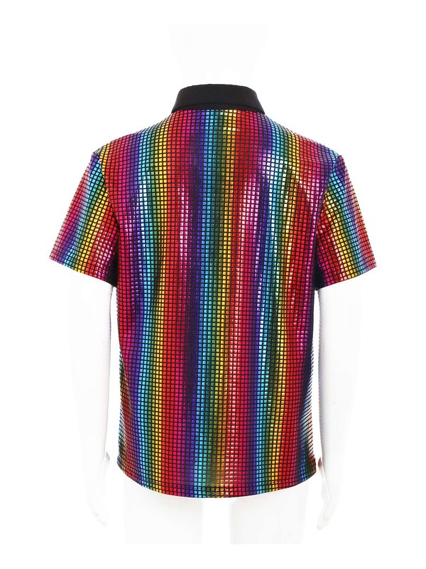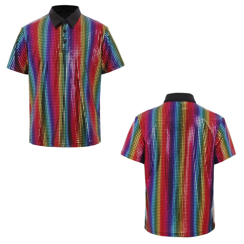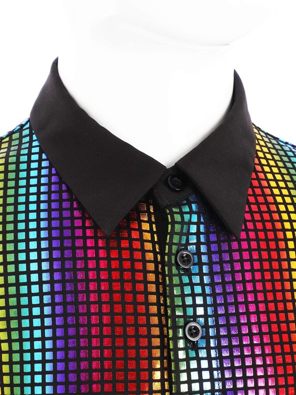 70s disco costume shirt for child size, can match with skirt, headband, hat, flared pants or sunglasses for a perfect look.