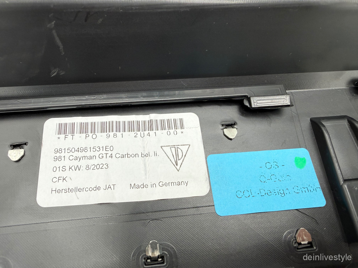 Geeignet für: Porsche Cayman Modell 981C GT4 Bj. 2016-2016
