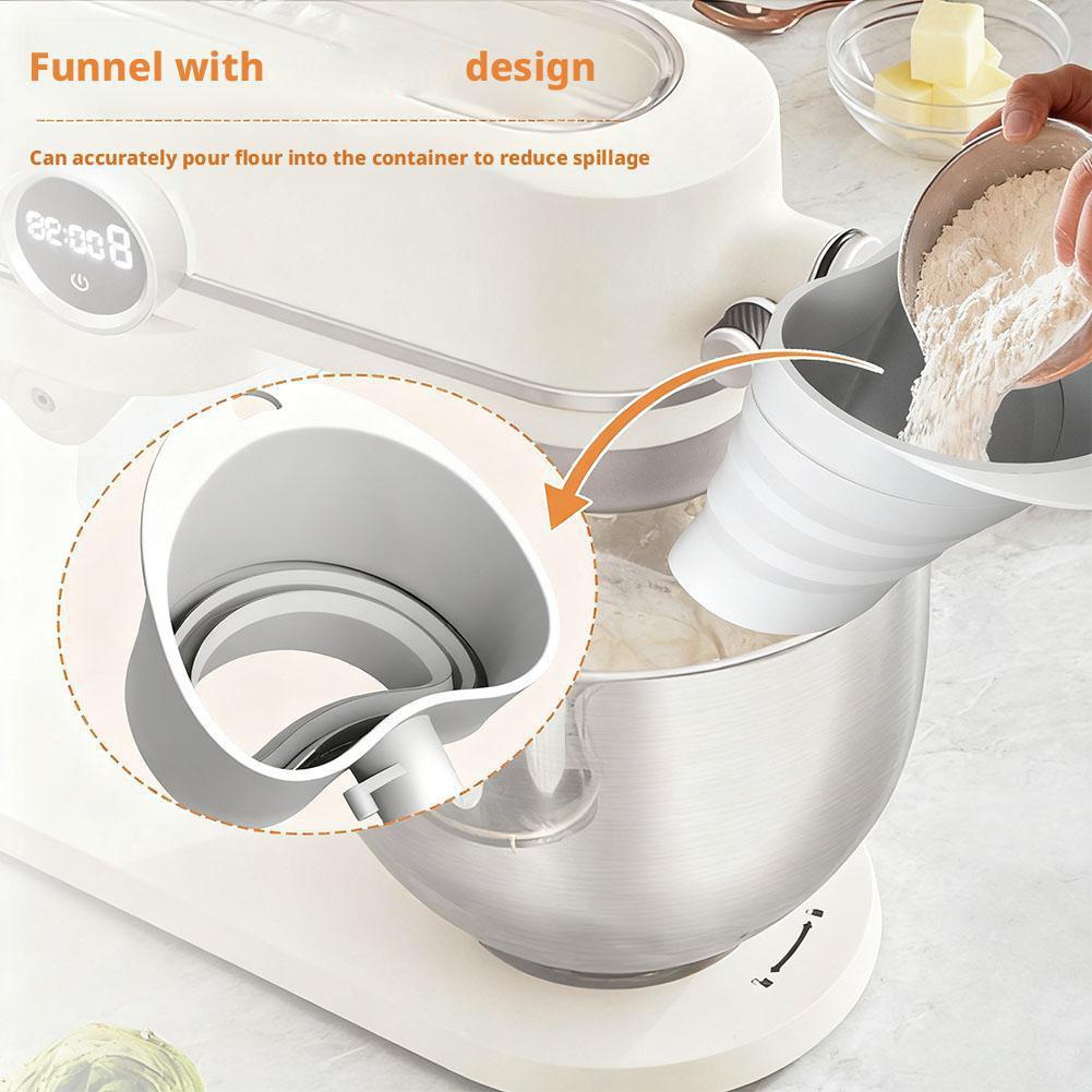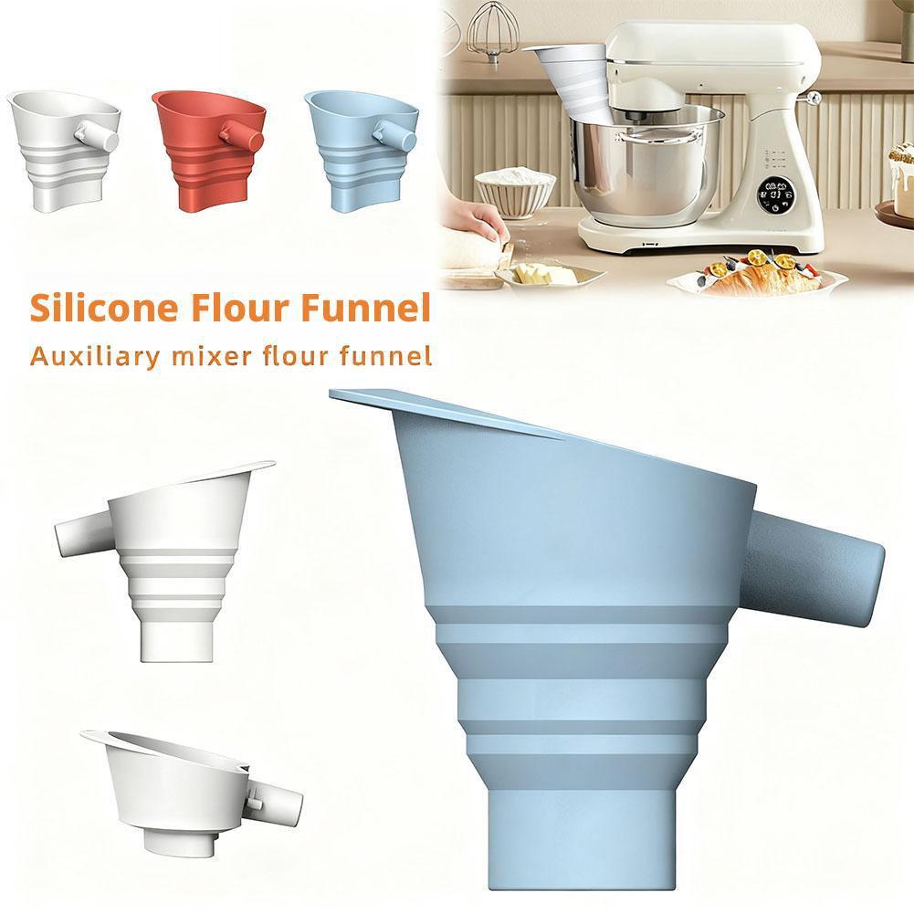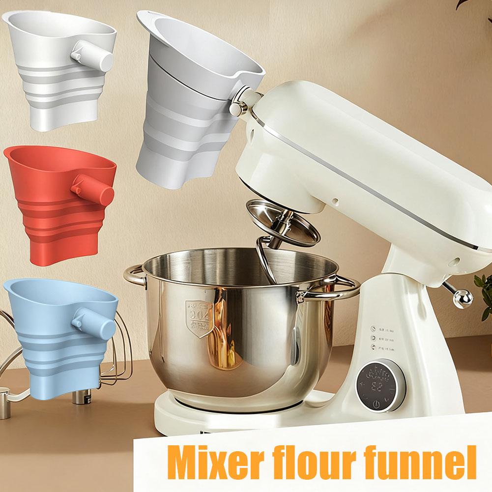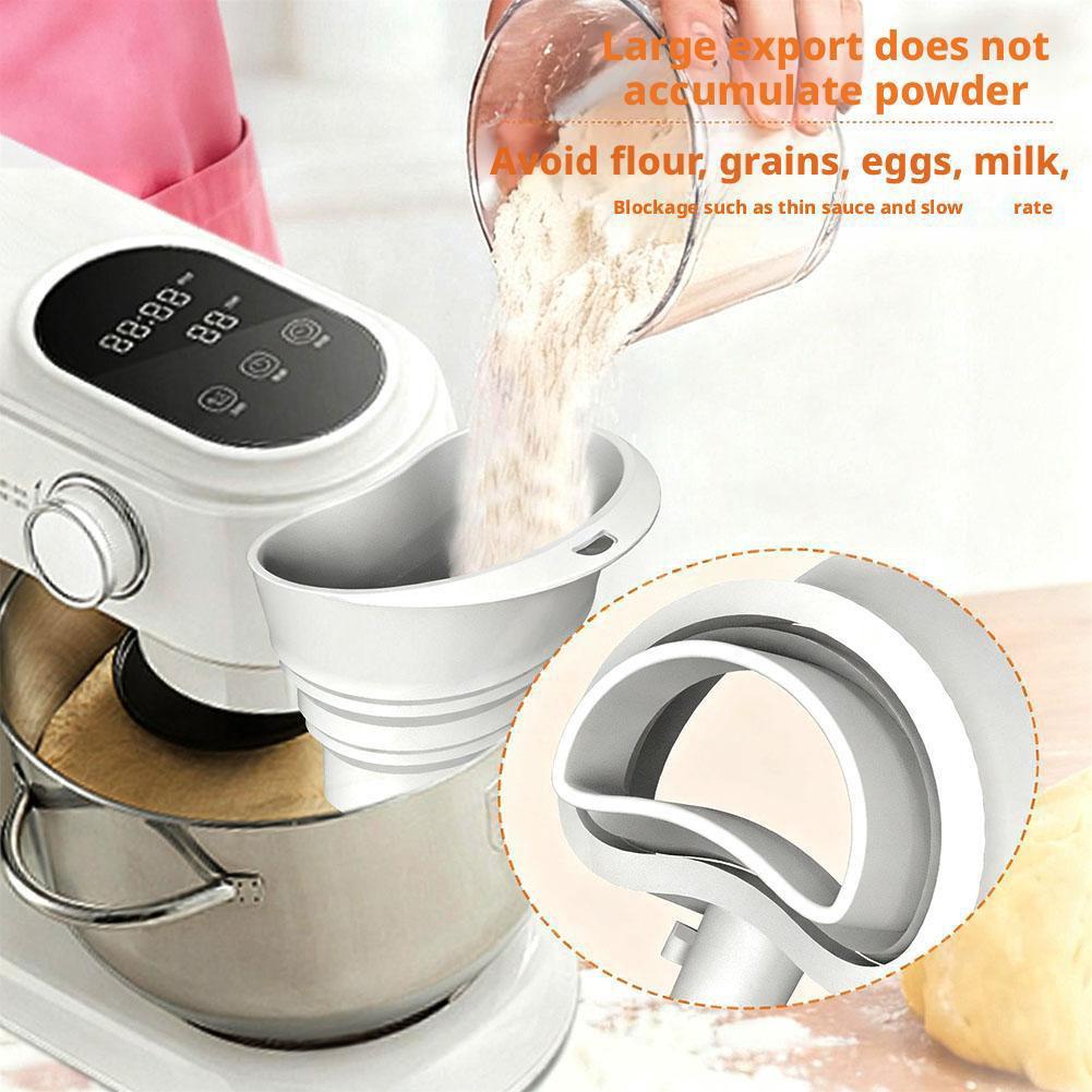 1. Simplify your baking process with the foldable funnel, which seamlessly attaches for KitchenAid tilt-head stand mixers (4.5-5 quart models, including the KSM150) for smooth, straightforward addition of ingredients without spills or guesswork. The foldable design stays out of the way while you add ingredients.