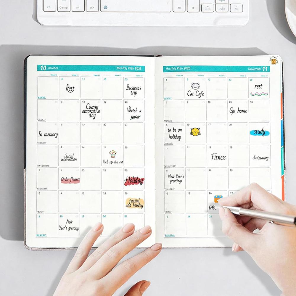 THOUGHTFUL WEEKLY LAYOUT: Our planner features each two-page weekly spread, from Monday to Sunday, offering ample lined writing space. It also includes popular holidays, two-month reference previews, and a dedicated priorities area.