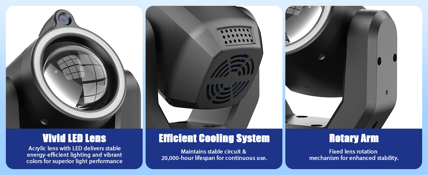 3. High-Performance Optics – Acrylic lens with powerful LED ensures stable, energy-efficient lighting and ultra-rich color expression