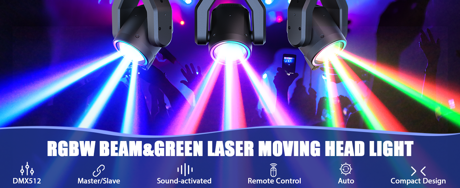RGBW Beam & Green Starfield Effect Mini Moving Head Light – RGB Halo, Remote/DMX512 Control, Auto & Sound-Activated Modes – Perfect for DJs, Parties, Clubs, and Stage Lighting