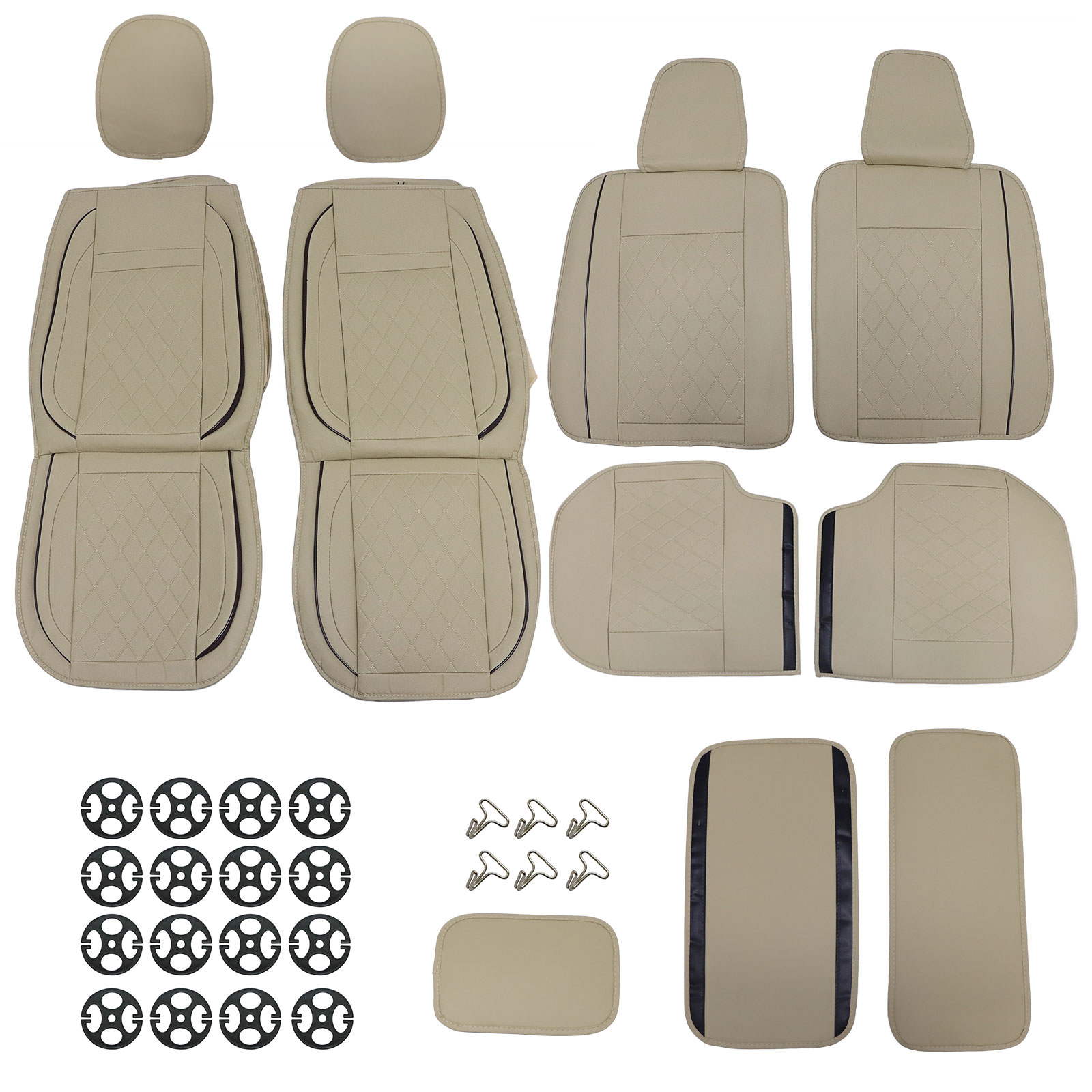 For Chevy Silverado GMC Sierra Full Surround Set Seat Cover Front & Rear Ice Silk & Leather Protector Cushion Tan