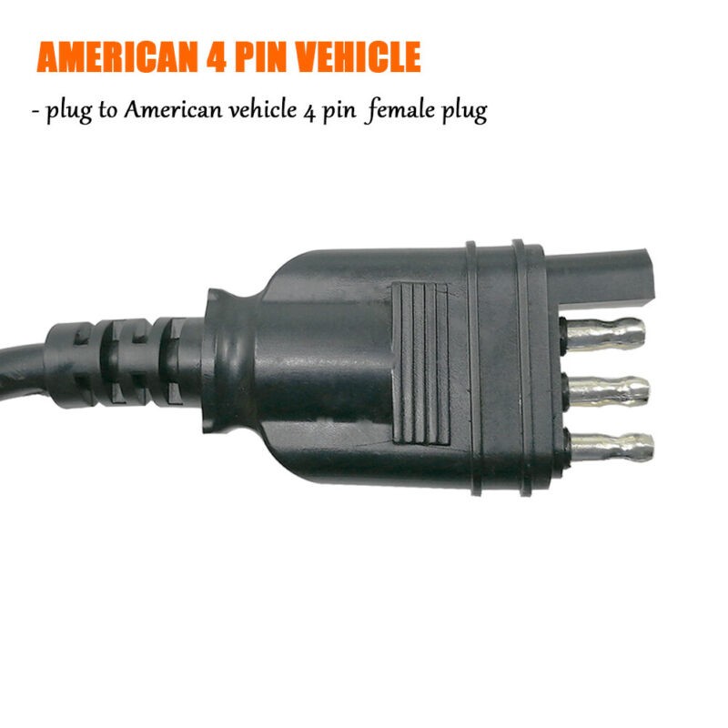 * Si votre véhicule américain a le connecteur plat 4 pôles et votre remorque européenne a le rond à 7 broches, où votre voiture doit séparer les signaux d'arrêt et d'arrière, cet adaptateur de câblage de remorque devra être utilisé.