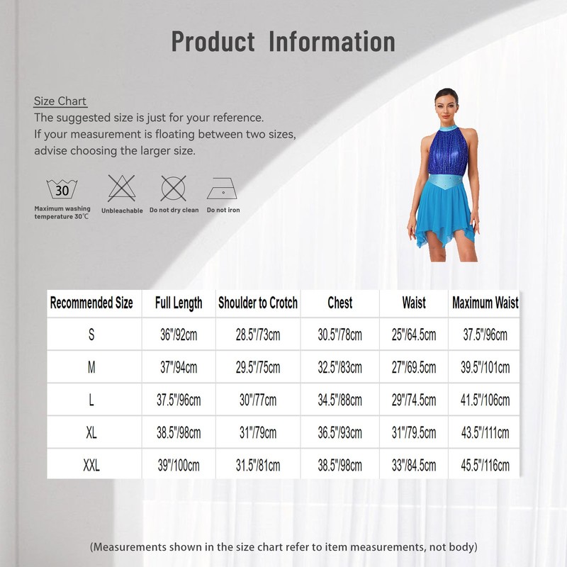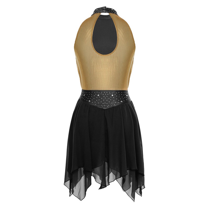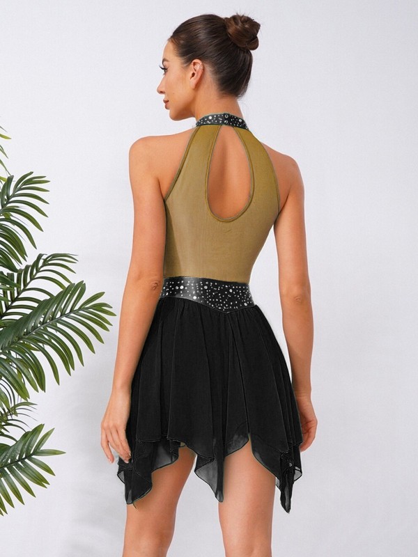 Made from a blend of polyester and spandex, the dress is soft and comfortable, allowing for unrestricted movement during dance routines.