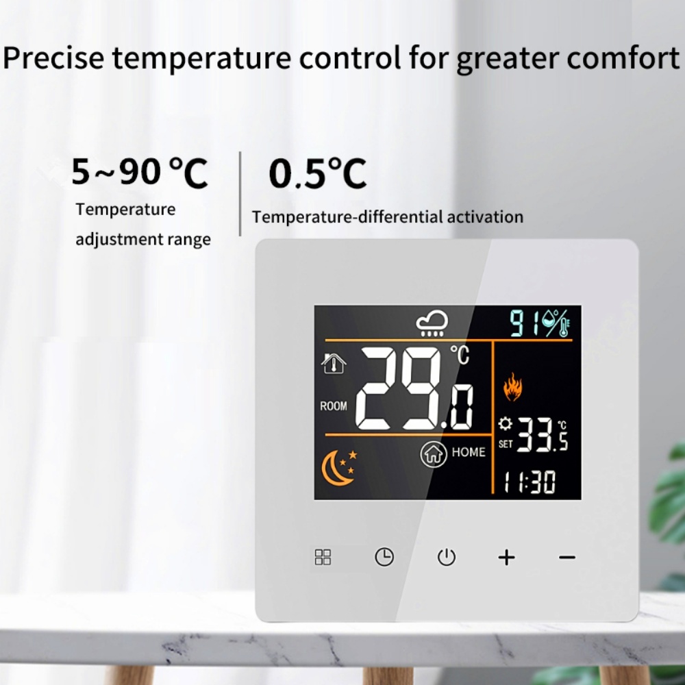 [Programmable Function] Support 5+2 /6+1 / 7 days Weekly Programmable, six periods programmable controlling temperature setting.