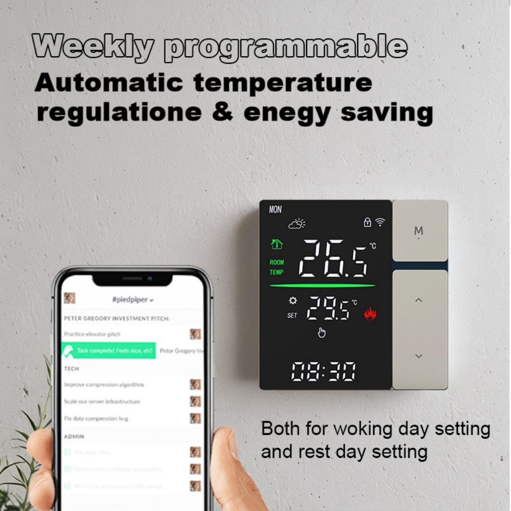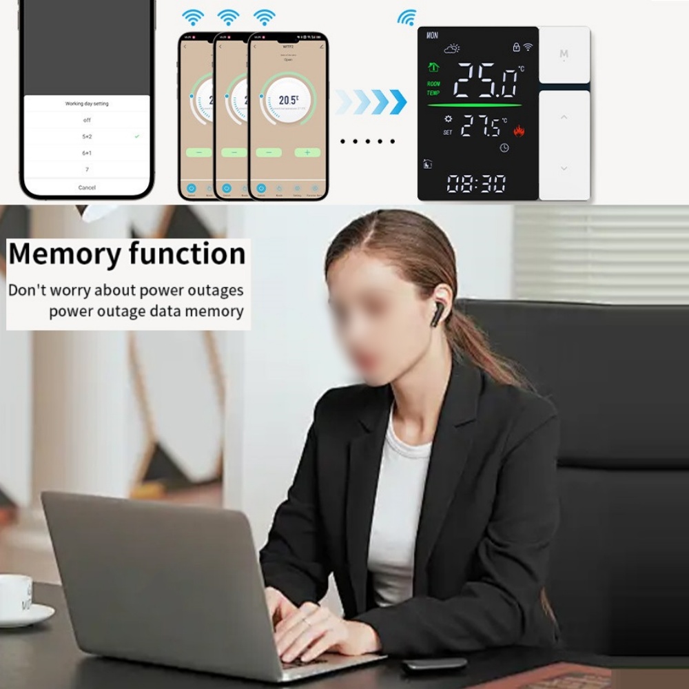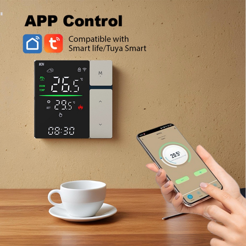 【APP Control】Smart thermostat that can be controlled by your phone before you come back home. (APP: TUYA or Smart life)