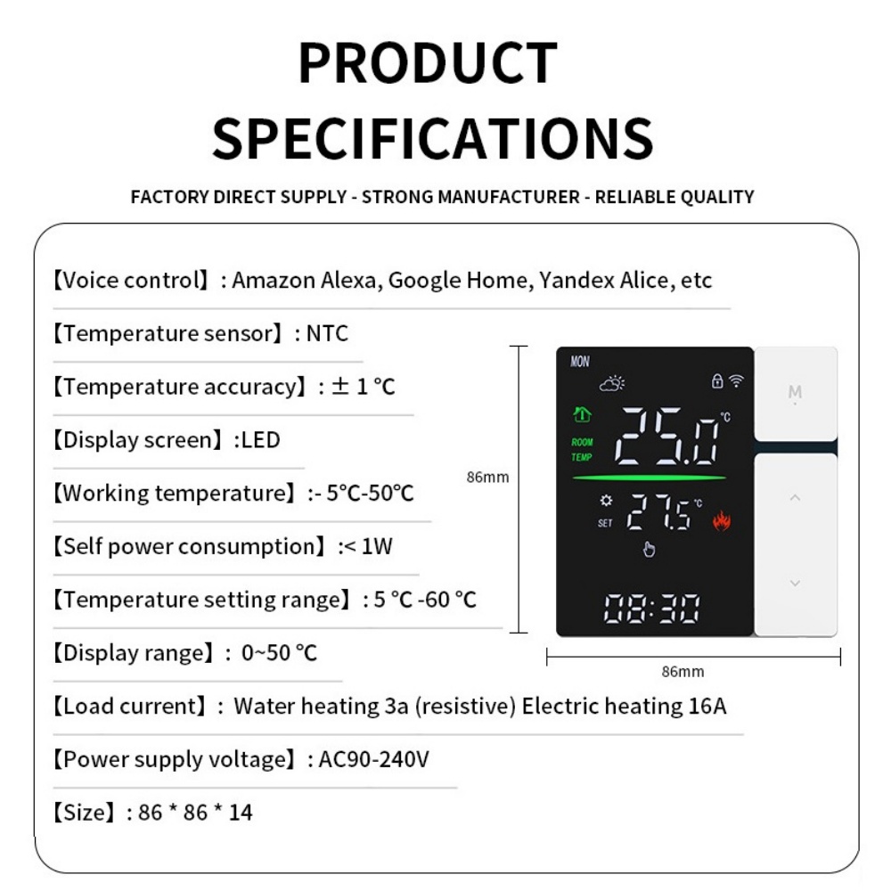 【Remote Control Access】: For TUYA Smart App, you can manage your home’s heating remotely from your smartphone. This feature enables you to adjust temperatures anytime and anywhere, insure optimal comfort tailored to your schedule.