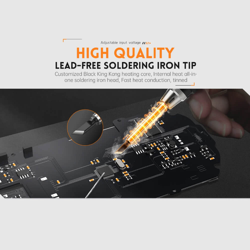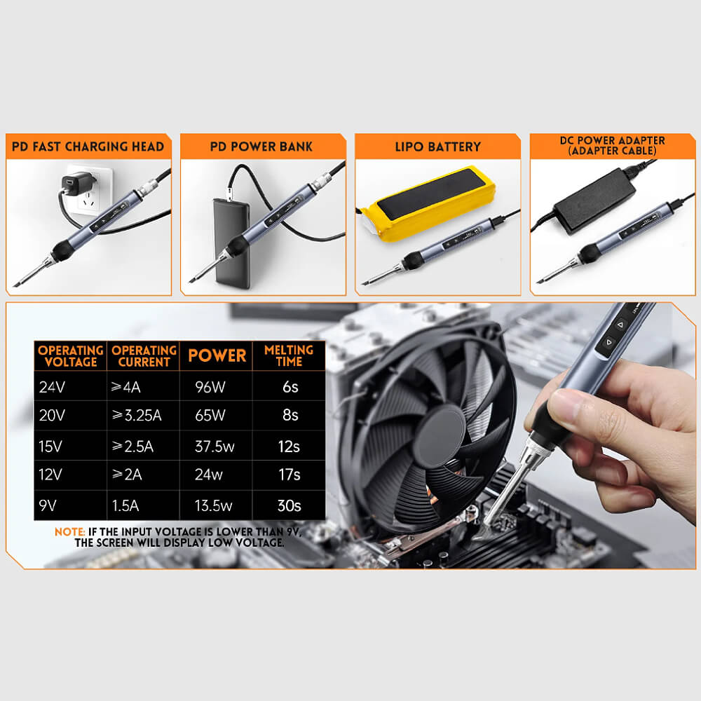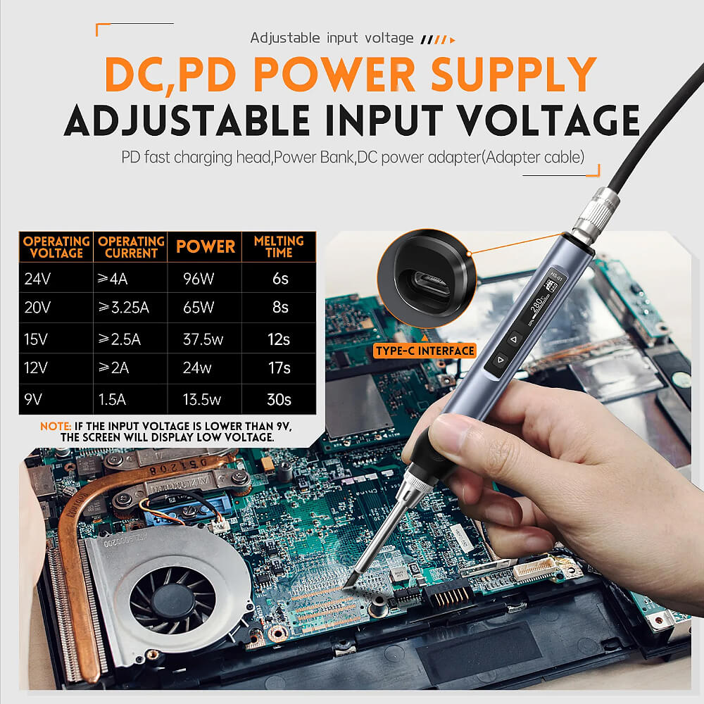 Equipped with a PD power supply, the HS-01 soldering iron can reach a maximum power of 65W, providing rapid heating and efficient power delivery. The DC power supply option, with a maximum power of 96W, ensures that you have a reliable source of power even when PD is not available. The soldering iron's OLED screen displays the current temperature, allowing for precise temperature control and monitoring. This combination of power and precision makes the HS-01 a valuable addition to any soldering station.