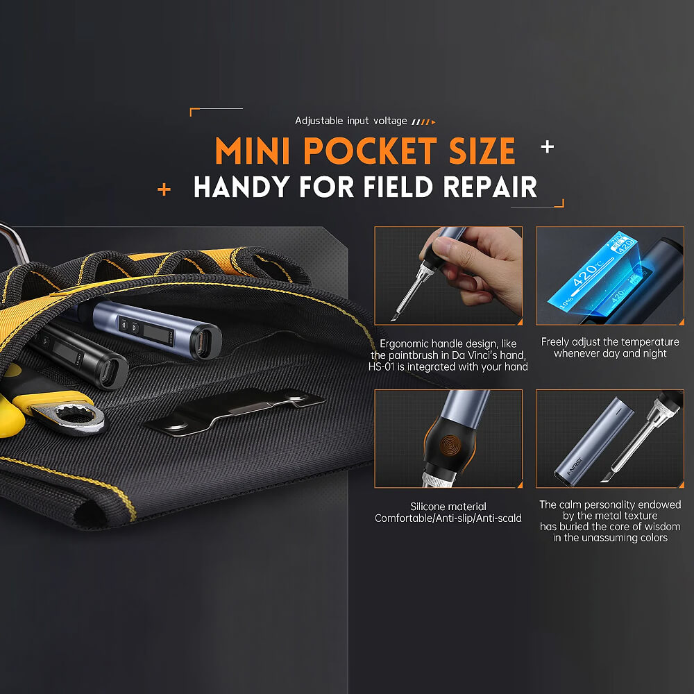 The FNIRSI HS-01 soldering iron is not just a tool; it's a companion for your soldering needs. Its anti-scald cap design ensures safety, while the hakko soldering station-like features make it a familiar and user-friendly device. Whether you're a h educate tools enthusiast or a professional in need of high voltage tools, the HS-01 soldering iron is designed to meet your soldering requirements. Its compact size and portability make it an indispensable tool for on-the-go repairs and projects.
