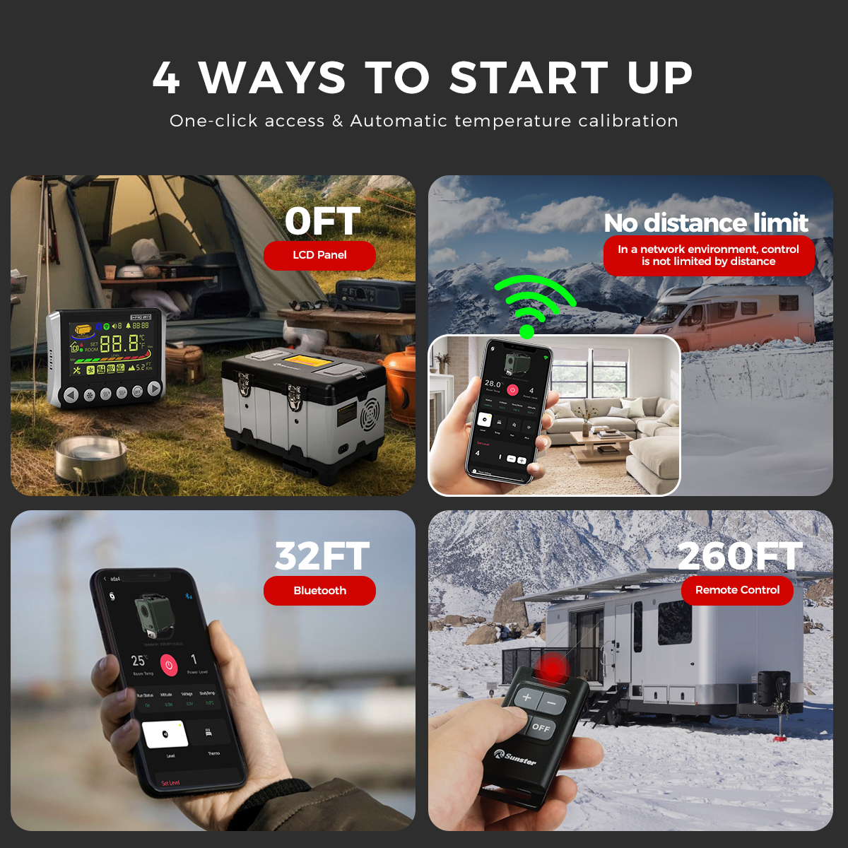 2025 Upgrade-Steuerung: (WLAN-Steuerung) Ausgestattet mit einer WLAN-Steuerung ohne Entfernungsbeschränkung. Mit diesem brandneuen, benutzerfreundlichen intelligenten Steuerungssystem können Sie Ihr Heizgerät unabhängig von seinem Standort vorab vorheizen, sodass Sie es warm haben und bequem nutzen können.