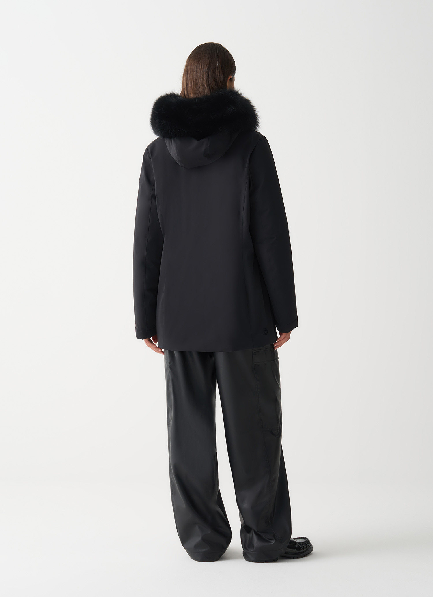 - Cappuccio fisso con coulisse di regolazione e pelliccia sintetica