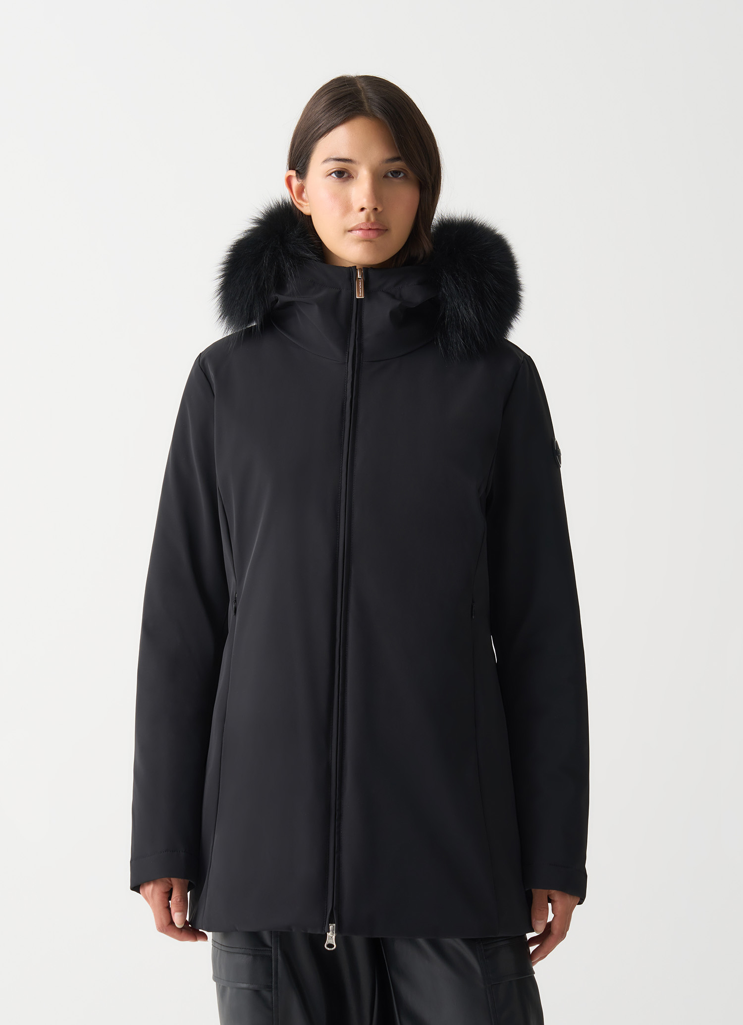 Progettata per offrire la massima protezione in inverno grazie alla sua impermeabilità, senza rinunciare a uno stile romantico e femminile, questa giacca in piuma unisce armonia e funzionalità. Il cappuccio con pelliccia sintetica e le tasche laterali con zip aggiungono dettagli distintivi, mentre il tessuto stretch assicura un comfort ottimale in ogni movimento.