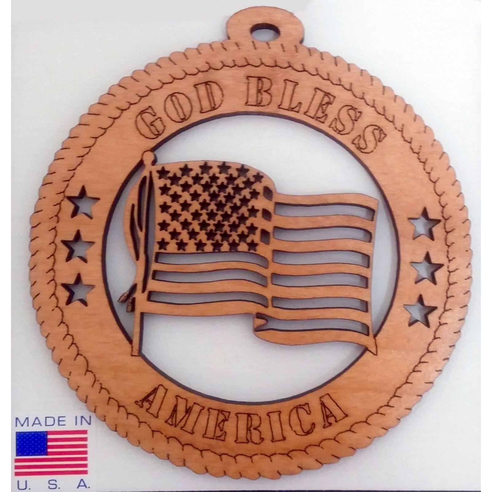 God Bless America Patriotic Made in USA Laser Cut Wood Christmas Ornament