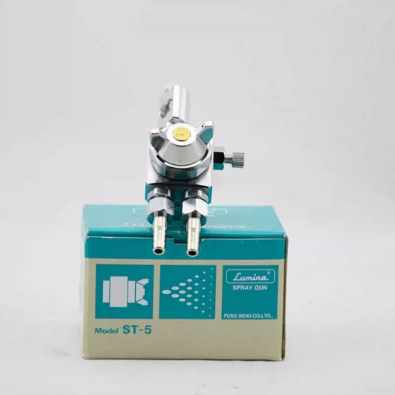 Complete set of configuration: Lumina box, an automatic spray gun, a special wrench, 3 hose connector, 3 hexagonal nuts, manual. Advantages Small gun body, simple operation; with a variety of nozzle caliber for choice, so that you can use more convenient; nozzle and thimble made of stainless steel, suitable for spraying water-based paint. Working Principle There is a pneumatic piston mechanism inside the nozzle, a stainless steel needle is installed above the piston, and a set of high-tension spring is installed behind the piston. When the compressed air supply stops, the spring will be the piston and the spray needle forward top, the spray needle and the nozzle to high-precision close fit to block the liquid through, on the contrary, the pressure of the compressed air, will be pushed away from the piston, the spray needle and the nozzle has a gap to let the liquid sprayed, the liquid and the atomization of the air contact to produce the effect of atomization. Spray gun piston action air and atomizing air with a common, compressed air pressure must be higher than the spring force of the piston (2Kg/cm2) spray gun to work properly. It is suitable for working environments with high atomization requirements and low spray switching frequency.