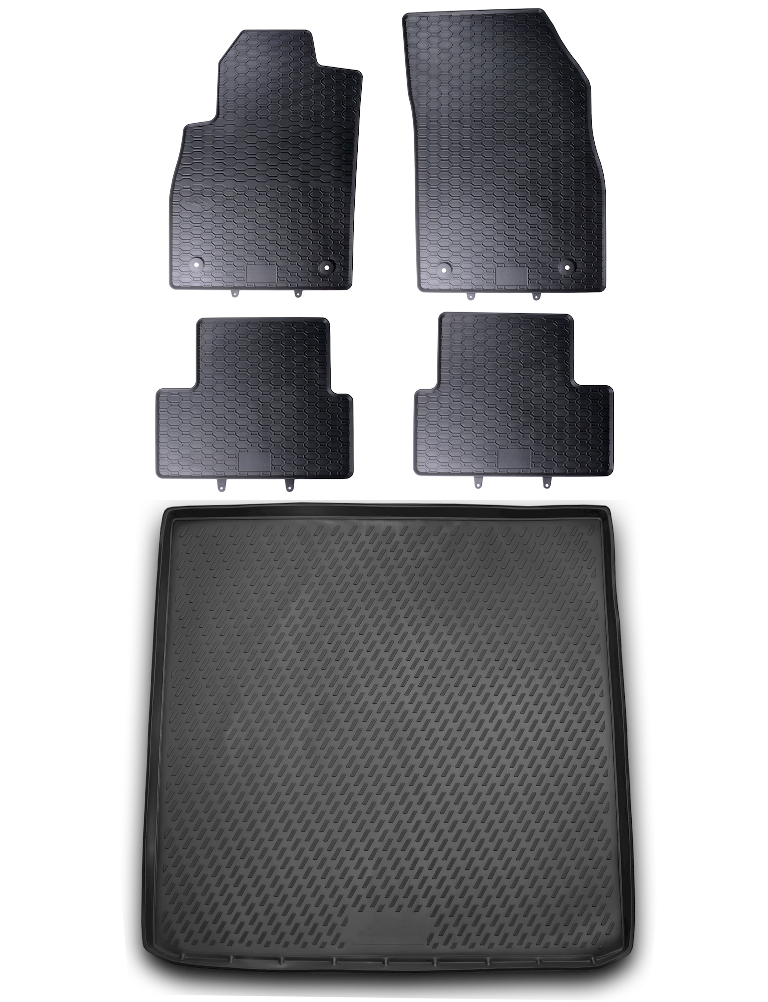- Ausführung: Gummi Fußmatten + Kofferraumwanne im Set
