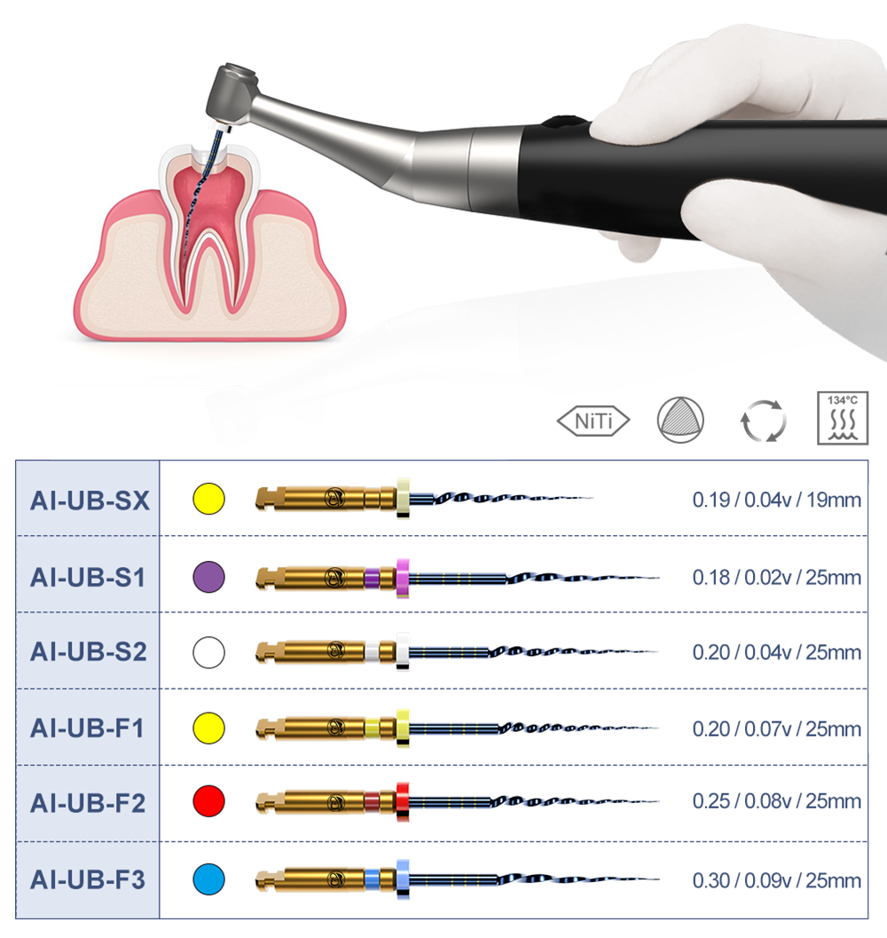 AI DENTAL AI-UB loving Endodontic File Dental Rotary Root Canal Files 19/25mm Niti Heat Activated for Endo Motor 6pcs/pack 10packs/box
