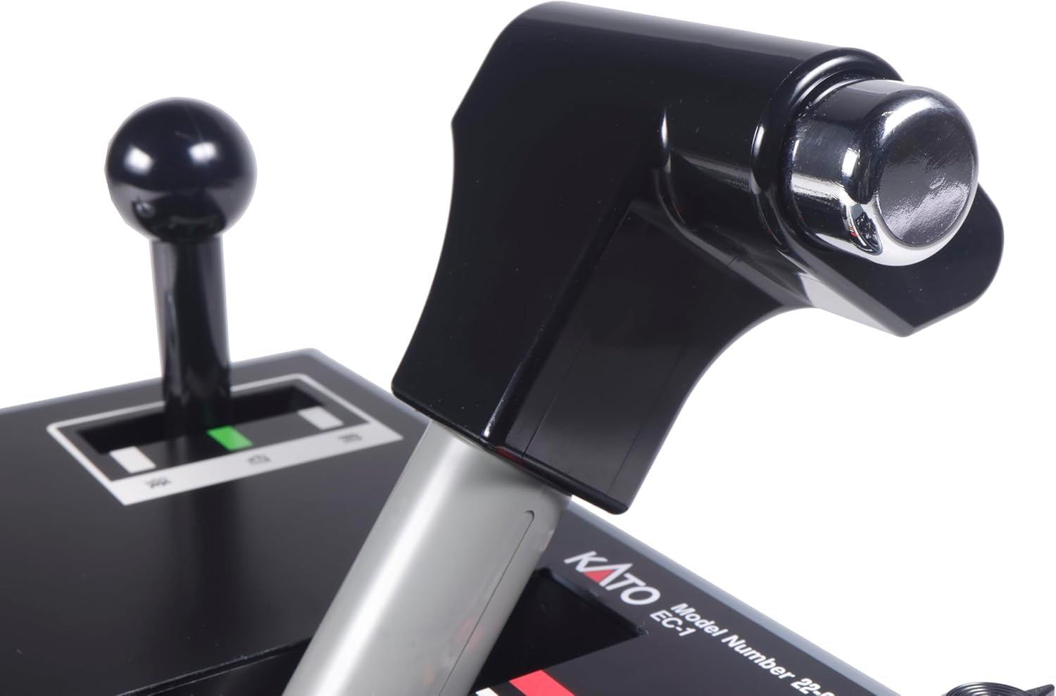 This is a Kato 22-053 EC-1 Proto-Power Cab Controller. Features: A controller that works with the sound box to provide a realistic driving experience and a feeling of operation similar to that of a real train. The handle shape and specifications are accurately modeled after the image of a real train, with notches of ""power (P): 5 steps, neutral (off), braking (B): 8 steps + emergency"", and ""P"" can be turned on by pressing the button on the handle, just like a real train. When coasting in the ""off"" position, the train speed is kept constant. By using the separately sold N/HO AC adapter according to the purpose, it is possible to operate at the optimal output for N gauge and HO gauge running. Equipped with a power supply function to the sound box. The power is turned on by inserting the included master control key. The power supply to the sound box is also linked to ON/OFF. When the sound box is connected, the brake release operation (turning ""off"") sounds a brake release sound, and the sound synchronization volume (SYNC) is equipped with separate acceleration/deceleration for improved responsiveness of the running sound. Equipped with a maximum speed adjustment volume and an acceleration/deceleration adjustment volume. The exterior color of the main unit is dark gray. Side snap terminals are not installed. If snap terminals are required, such as for point switches, use the separately sold . External dimensions: 246mm x 124mm x 150mm Weight: 2.2kg. Input voltage is DC13.5V / 17V (compatible with N AC adapter and HO AC adapter sold separately). Output voltage is 0-12V / 0-16V, 2.0A.