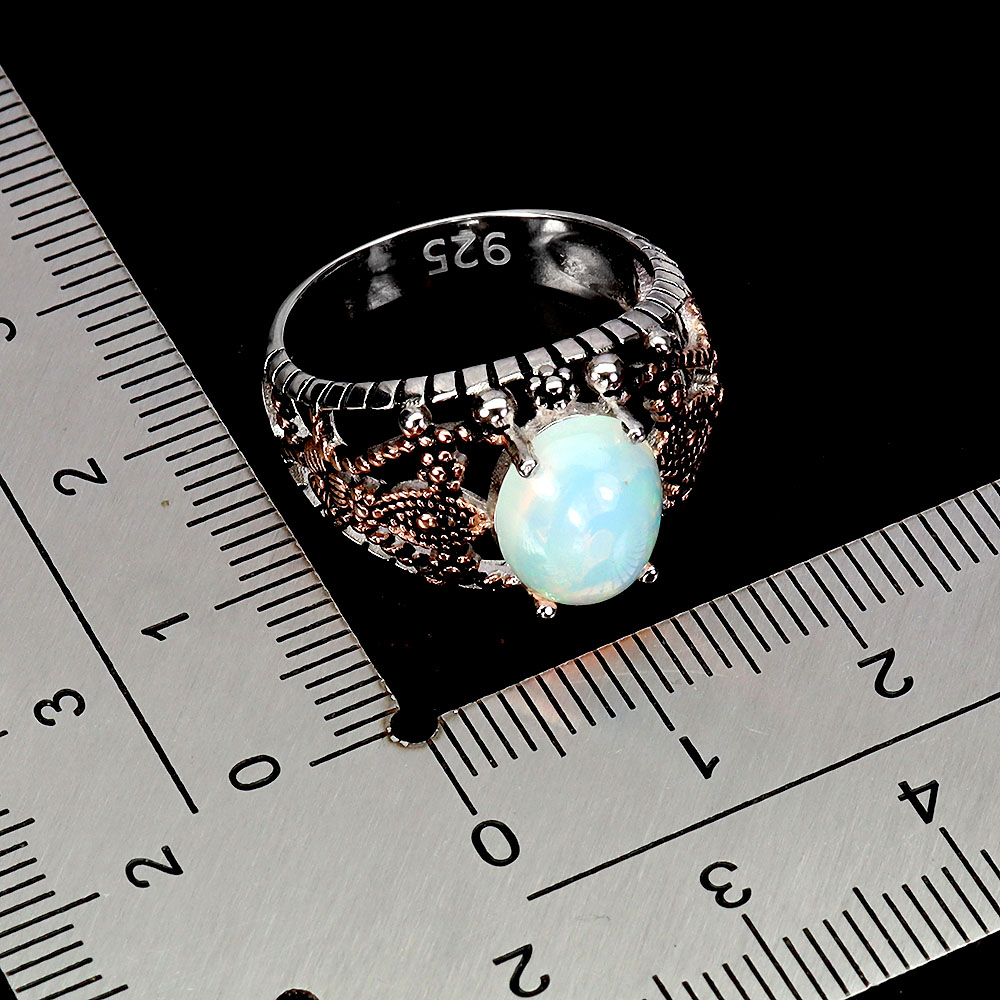 925 Sterling Silver Ring Oval Fire Opal 10x8mm Natural Gemstone Jewelry Size 7