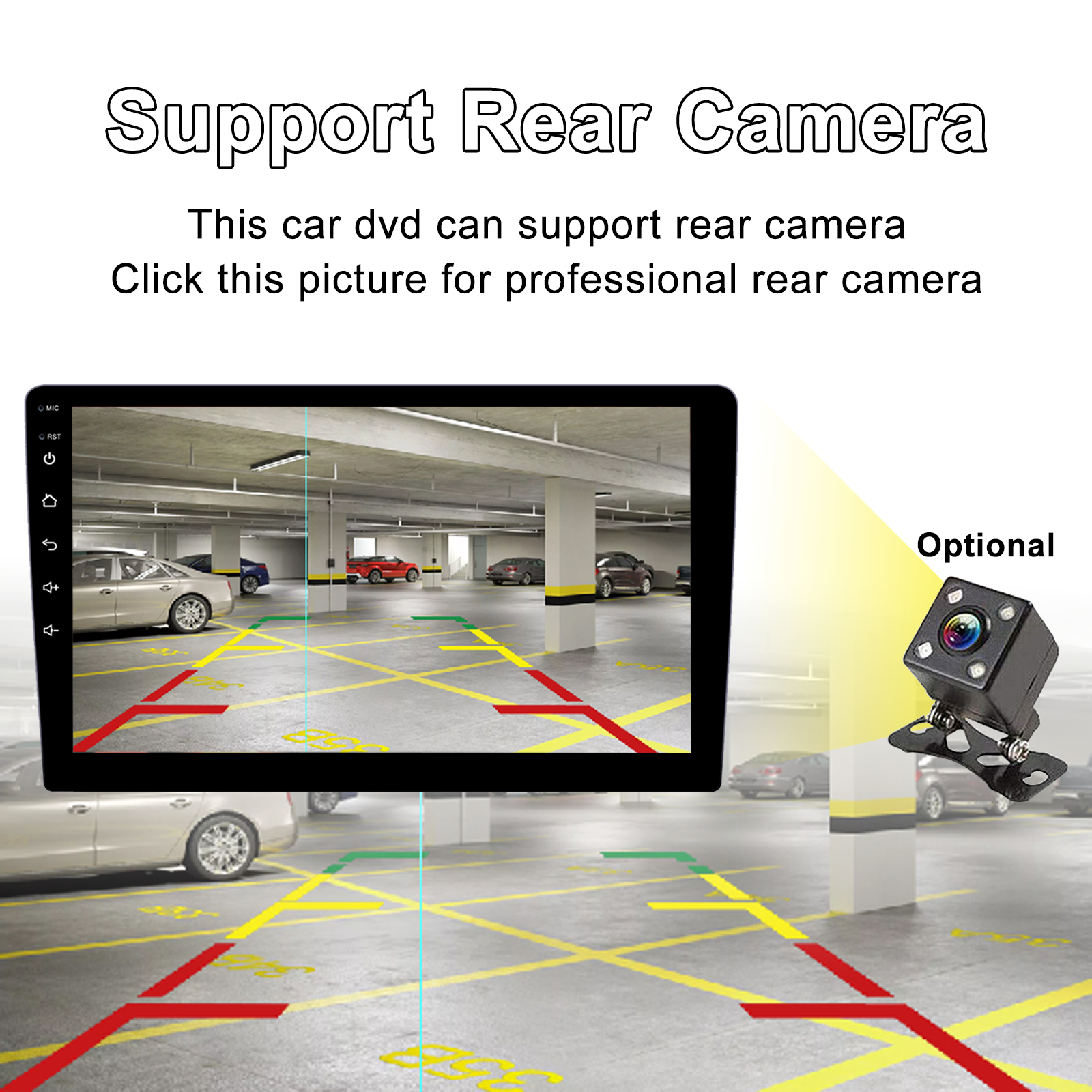 8.Rear view function:Support Rear view camera input, backing car more safer and convenient