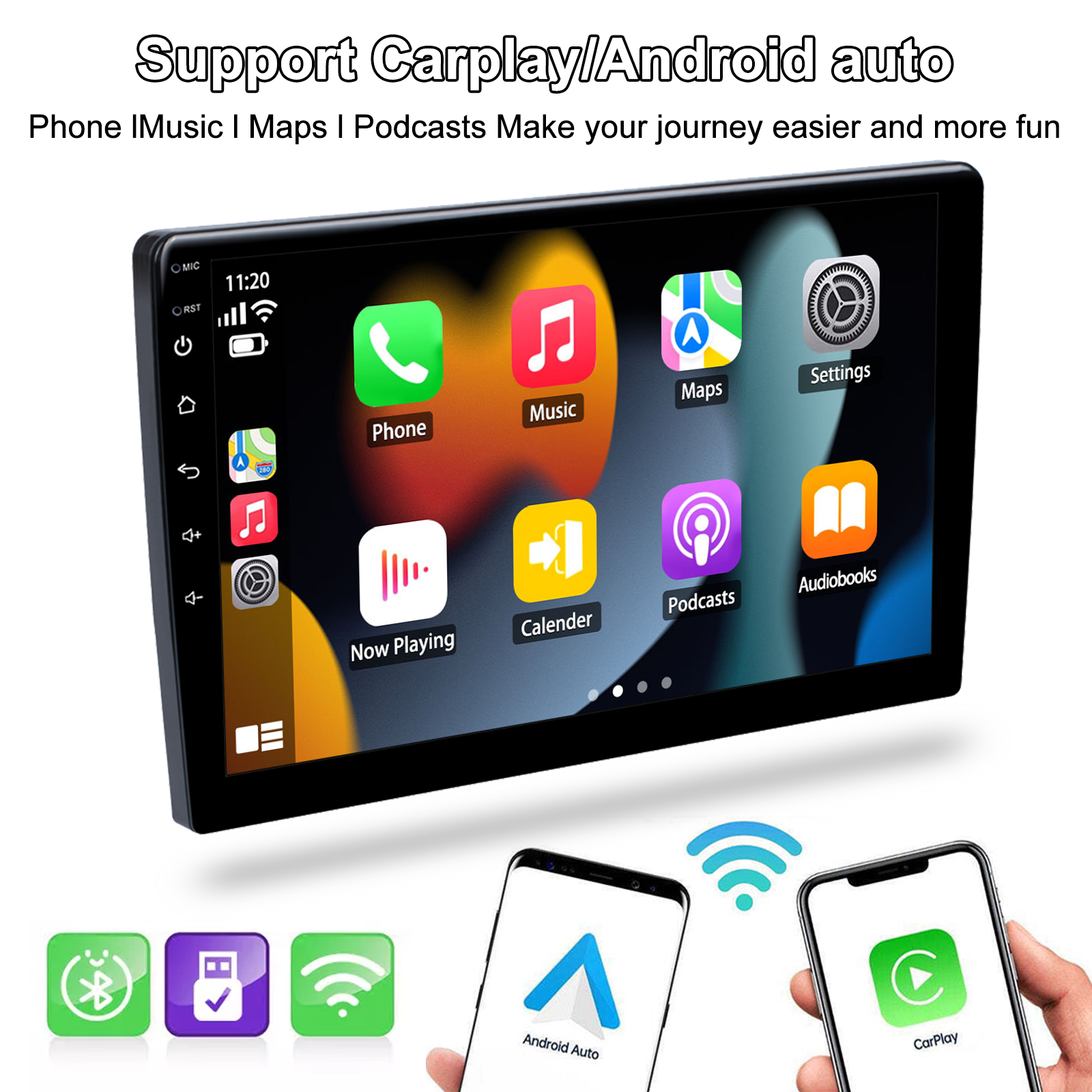 1.Carplay: wired or wireless Carplay in-vehicle system can closely integrate the user's iOS device and iOS experience with the dashboard system. Users who use wireless Carplay can connect to the car system via Bluetooth to realize voice-controlled navigation, make calls, send and receive messages, and listen to music. It is only available for iPhone