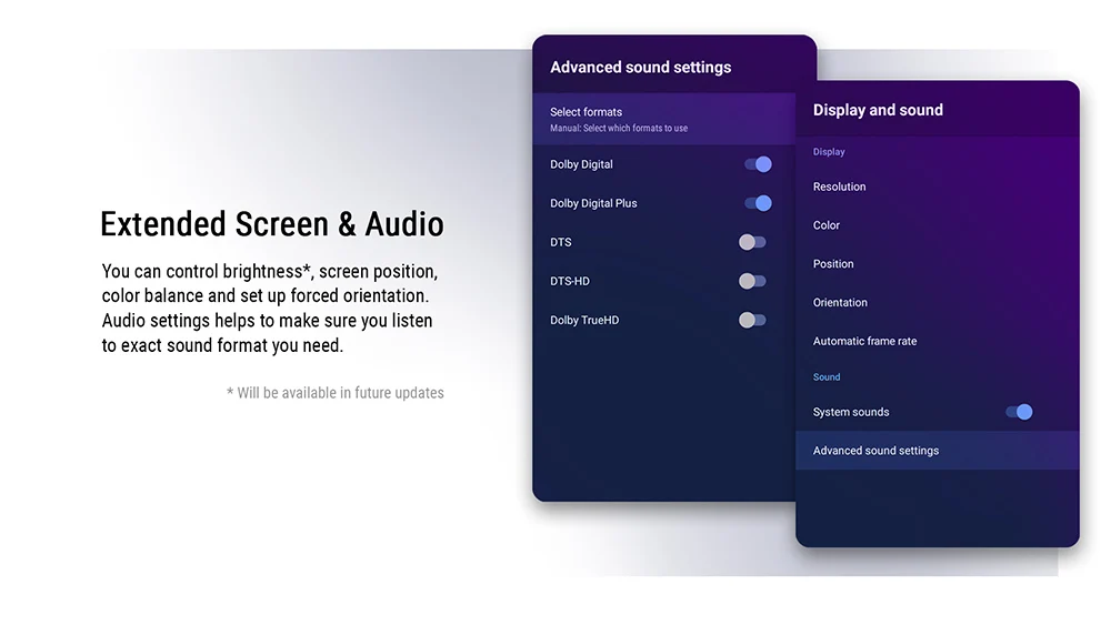 - Support: AV1, 4K 60 fps, CEC, HDR