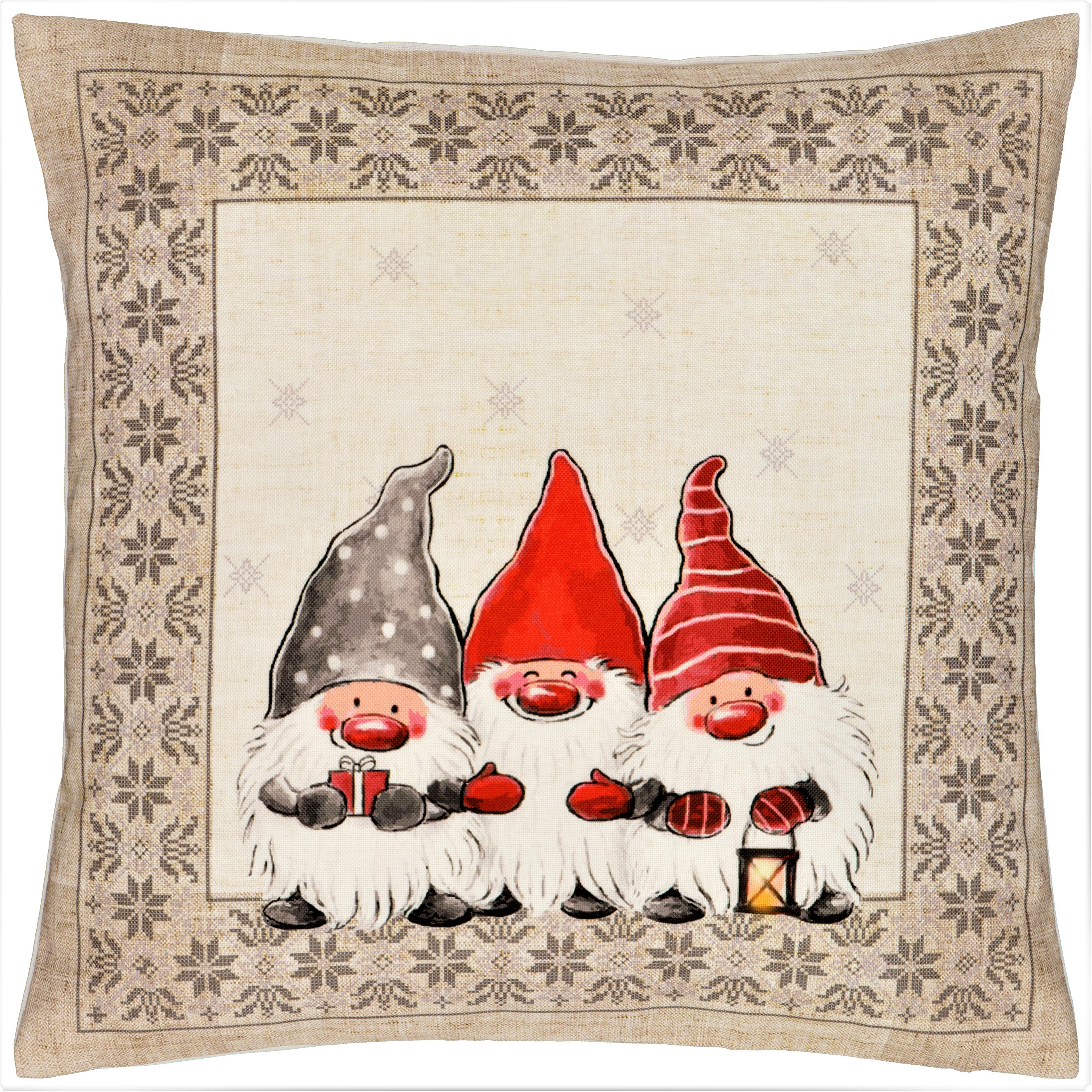 Kissenhülle Weihnachten 40x40 Wichtel Beige Dekokissen Sofakissen Kissenbezug Ki