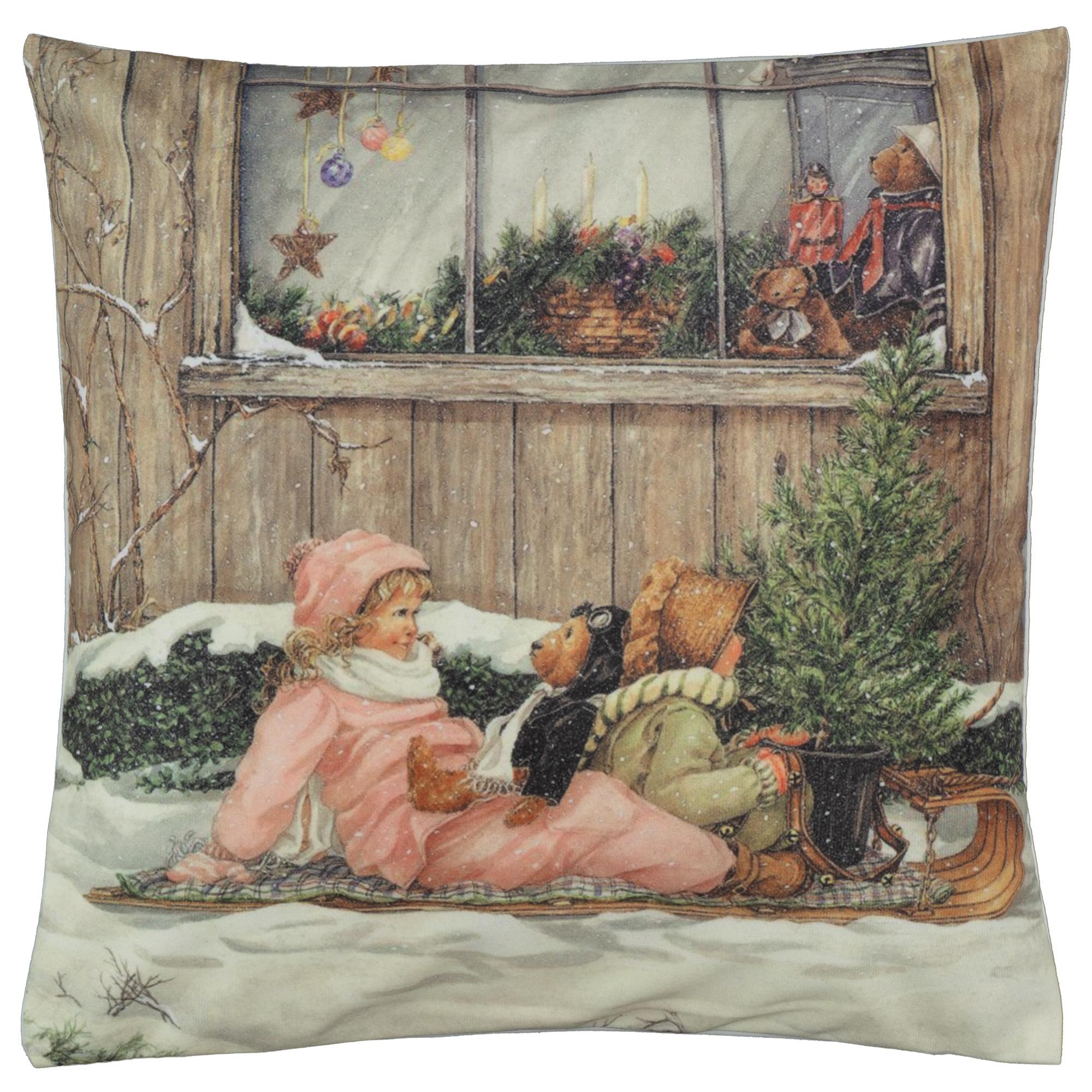 Kissenhülle Winter 40x40 Kinder Nostalgie Dekokissen Weihnachten Weihnachtskisse