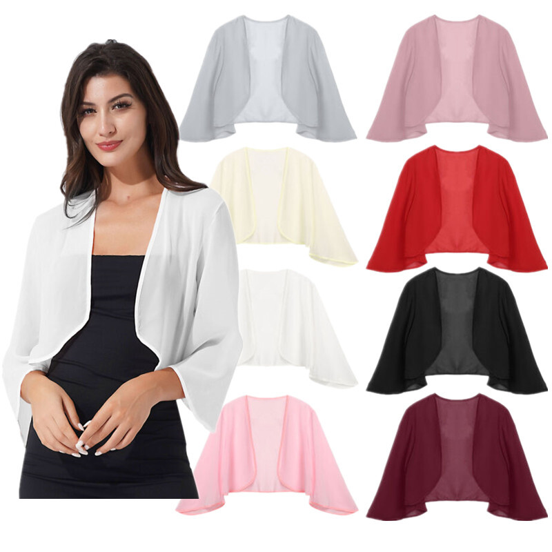 Womens Casual Long Sleeve Sun Protection Tops Open Front Chiffon Wraps Pleated Shawl Cover Ups.