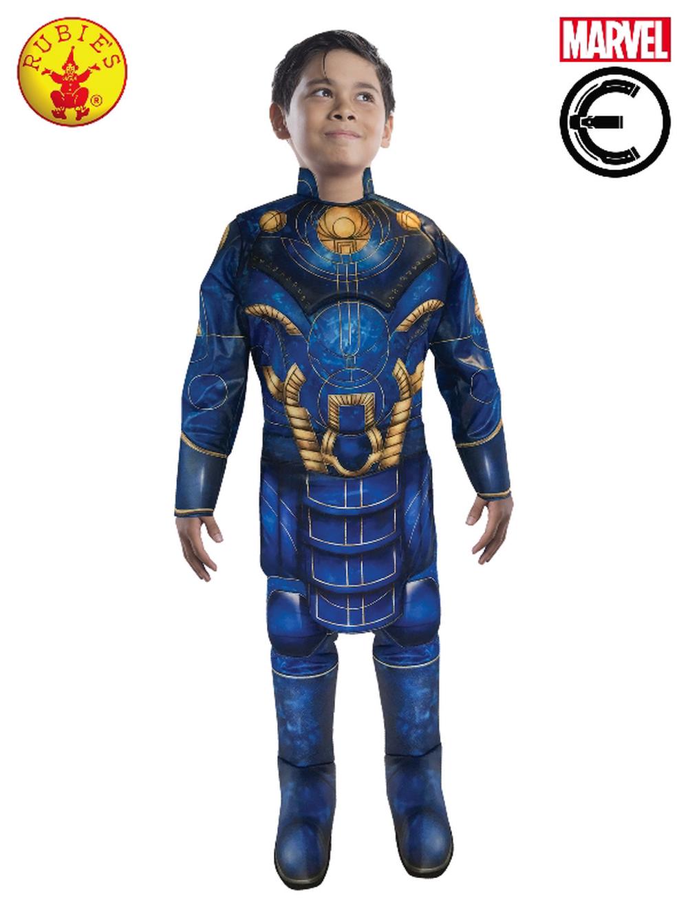 Description Ikaris is a fictional character appearing in Marvel Comics. The character, playd by Actor Richard Madden is depicted as a member of a human offshoot race known as the Eternals. He is a third generation member of the Eternals, an evolutionary offshoot of humanity who possesses extraordinarily long life spans and superhuman powers. He was born over 20,000 years ago to two members of the Polar Eternals, the group of Eternals living in the Eternal city of Polaria in what is now Siberia. Catch him in the 2021 movie alongside Sersi. INCLUDES * Digitally printed tunic top in new wet-look material and fibre filled muscle chest and stitching. Top features a neck collar with foam backing * Full length sleeves with digital print and fibre filled muscles with stitching details plus layered-look hemline at front and rear * Matching Pants with attached foam backed boot covers plus foam backing behind the knee pads * Shoes not included * This is an officially licensed Marvel product