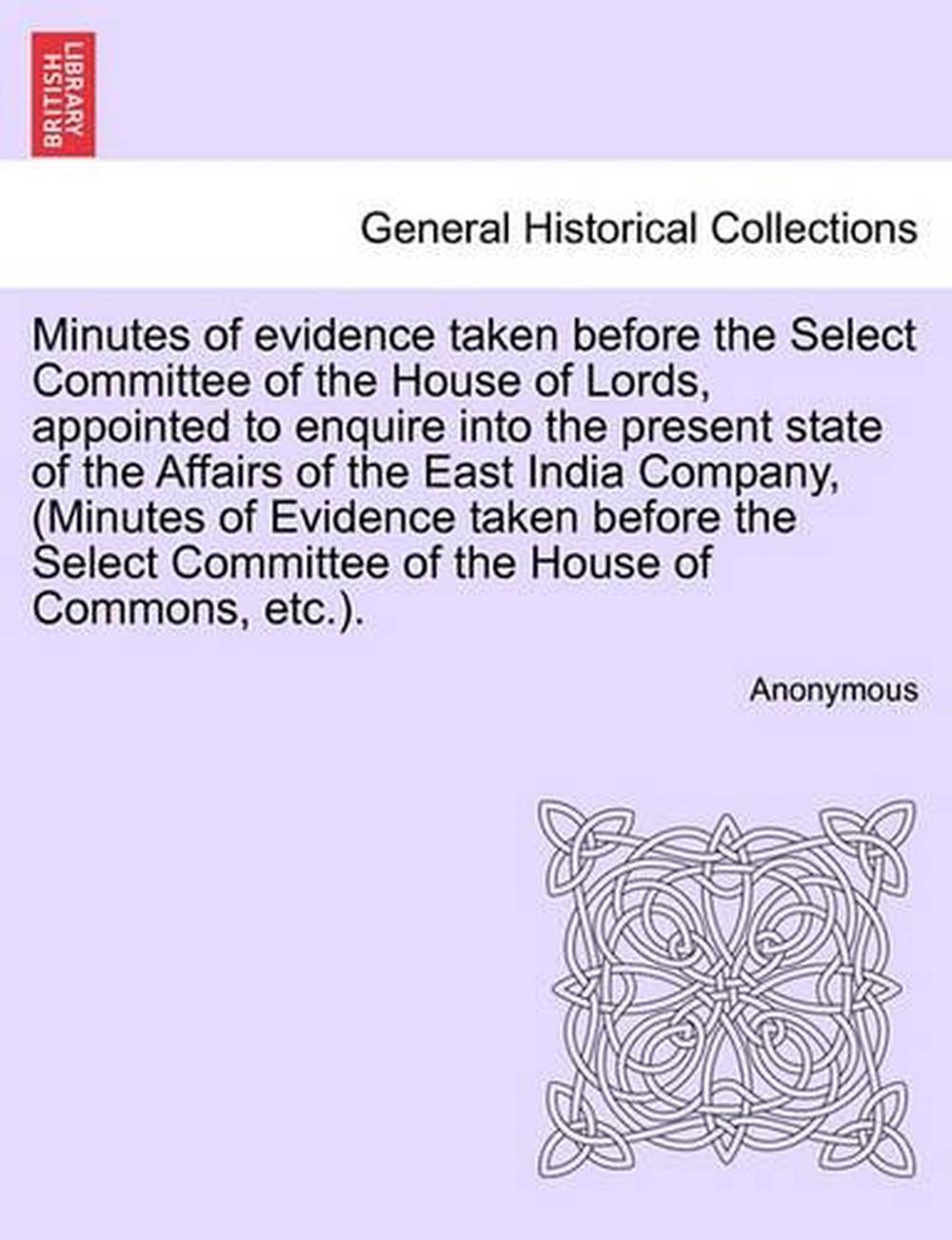 Minutes of evidence taken before the Select Committee of the House of Lords, appointed to enquire into the present state of the Affairs of the East India Company, (Minutes of Evidence taken before the Select Committee of the House of Commons, etc.).
