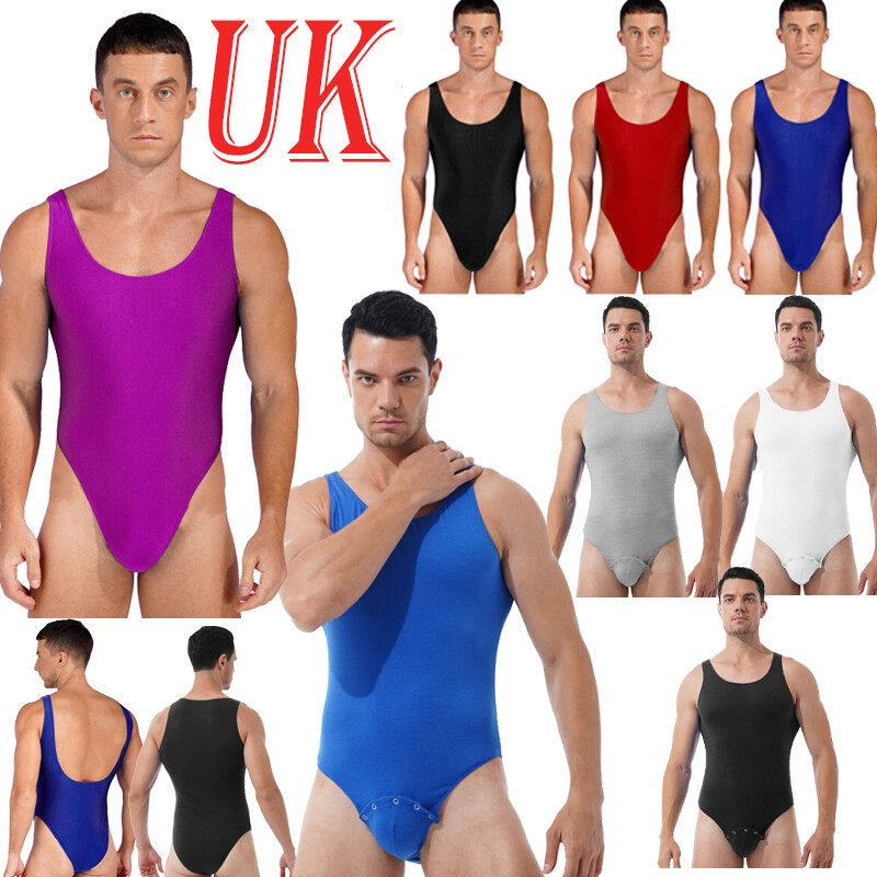 Men’s one-piece shirt bodysuit romper snappies pajamas, snap crotch closure.