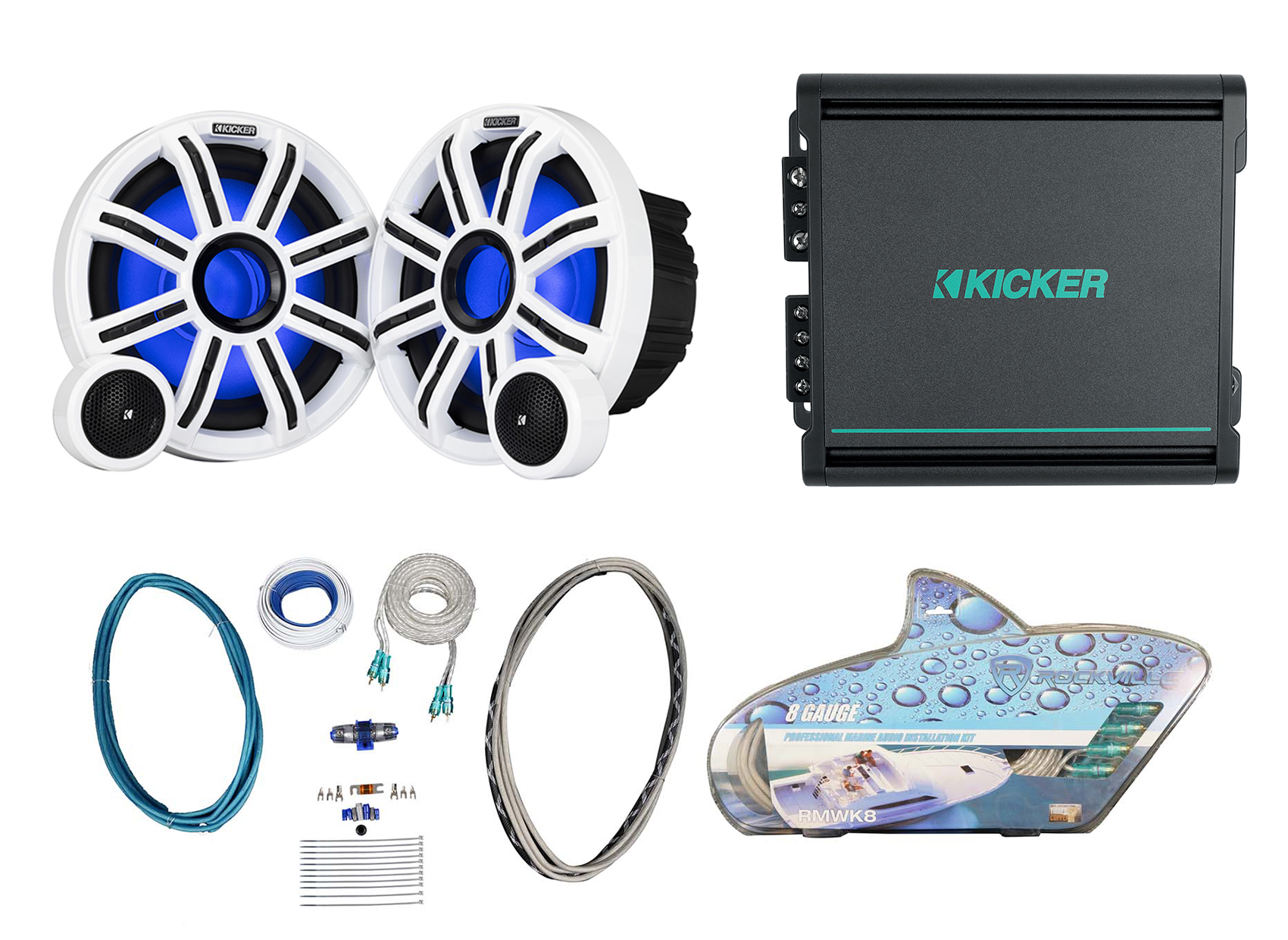 Pair KICKER 51MSS8 8" 400w 4-Ohm Marine Component Speakers+2-Ch. Amplifier MSS8