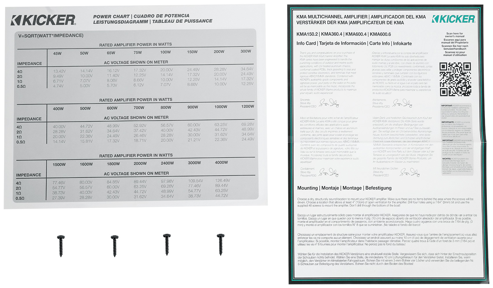 - (1) KICKER 48KMA1502 150 Watt 2-Channel Marine Amplifier Boat Amp KMA150.2