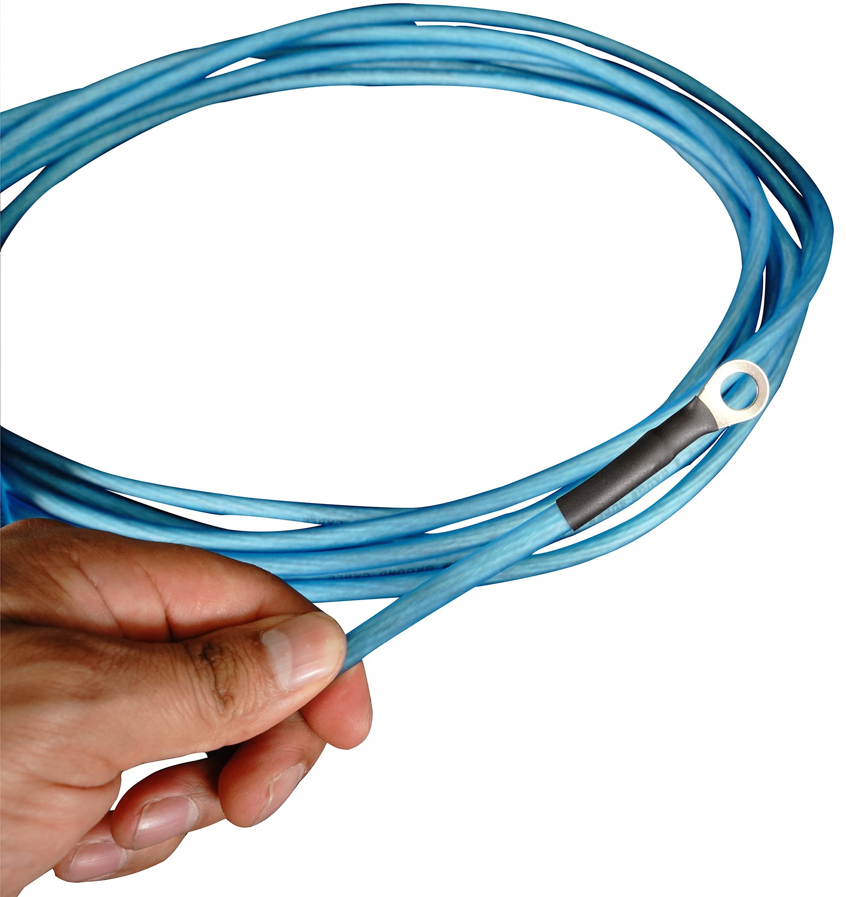- 18’ 8 Gauge High Current, Low Impedance, Light Blue, Flexible Ground Cable