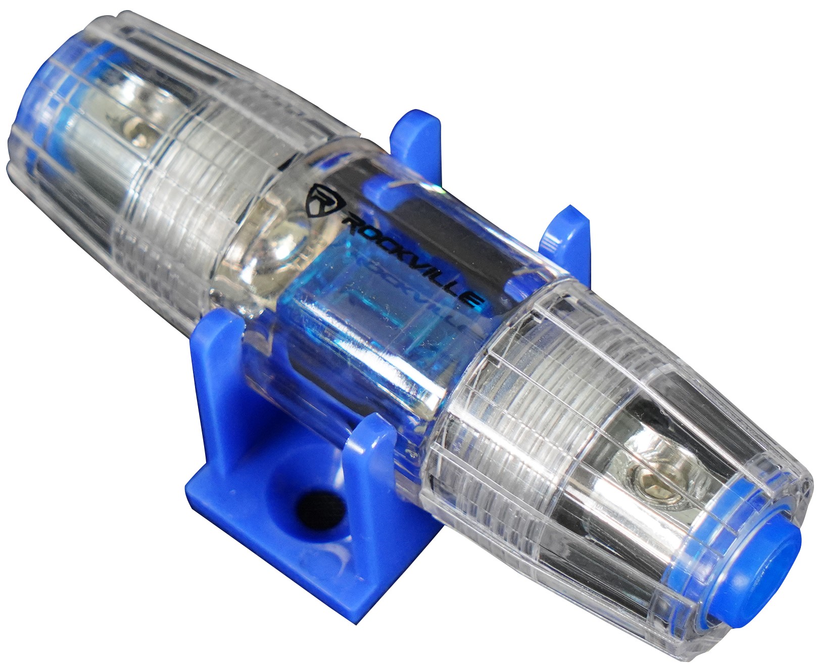 - 1 Silver Mini-AGU Fuse Holder – Clear Shell and Clear Blue Bottom Bracket with Blue Waterproof Ring