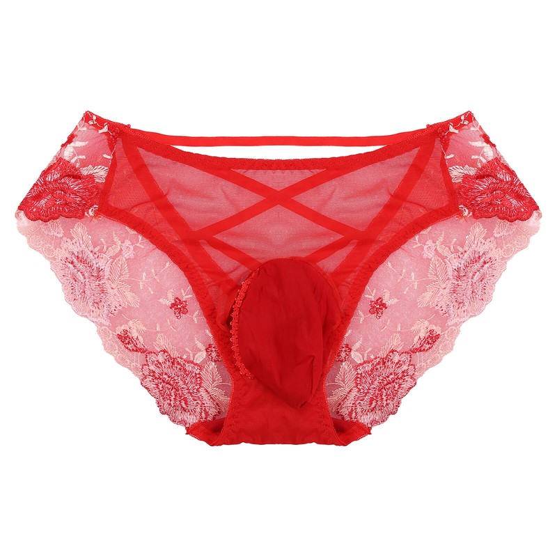 Men See-through Embroidered Briefs Bulge Pouch Hollow Out Cross Back Low Rise Underpants.