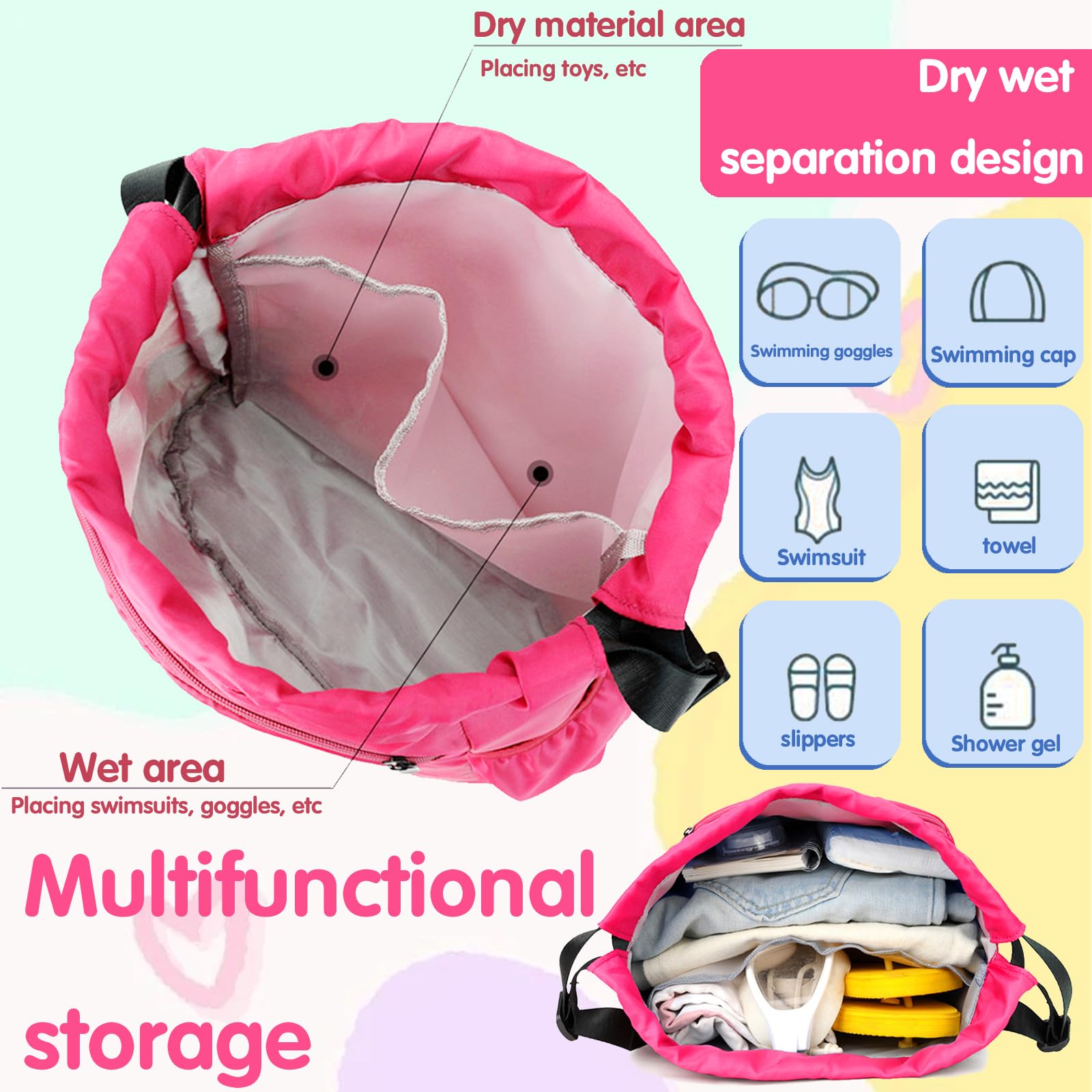 【Ampiamente applicabile】 Questo borsa nuoto piscina bambini può soddisfare le tue diverse esigenze, può essere utilizzato come borsa da nuoto, borsa sportiva o borsa da scuola. Ideale per il nuoto, lo sport, il campeggio e gli spostamenti quotidiani. È anche il miglior regalo per ragazzi, ragazze