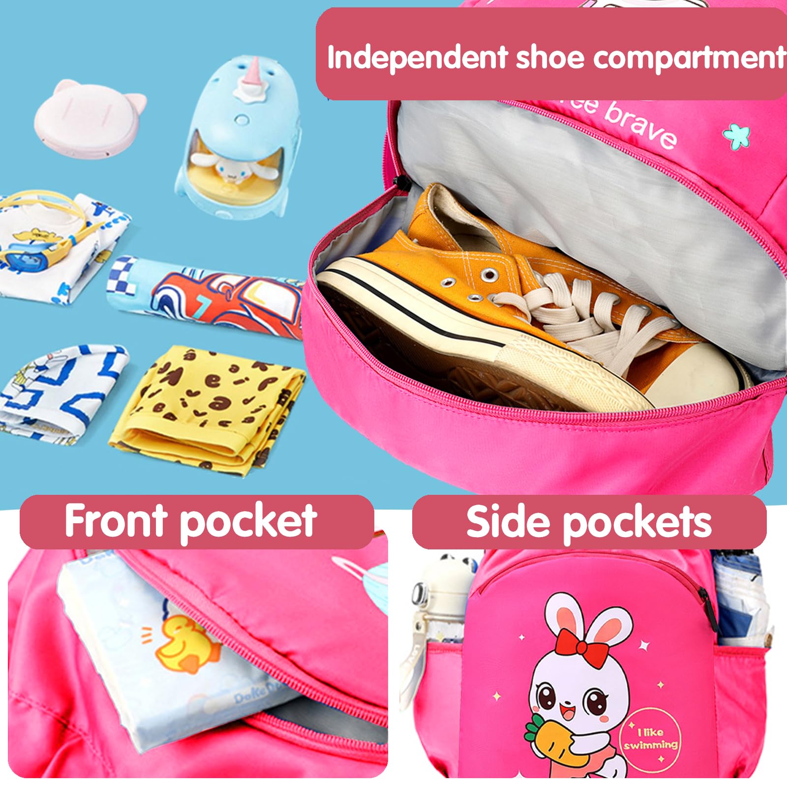 3.Borsa piscina ragazzino portare scomparto per scarpe, nello scomparto inferiore della borsa da