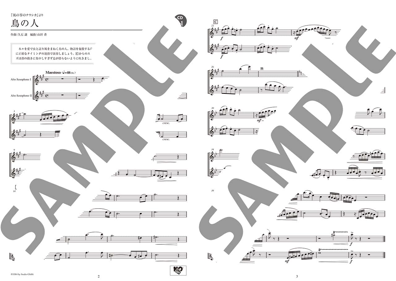 Score, Musical score, Hayao Miyazaki, Studio Ghibli, Saxophone, Duet, Ensemble, Ghibli, Music score collection, Song collection, Music score, Wind instrument, Sax, Saxophone duo, Piano accompaniment, Concert, Recital, CD included, Repertoire, Popular, Laputa, Totoro, Kiki's Delivery Service, Princess Mononoke