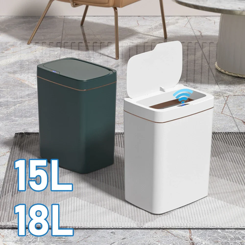 15/18L Smart Sensor Trash Can Waterproof Intelligent Touchless Trash Can Quiet Auto Motion Sensor Rubbish for Kitchen Bathroom