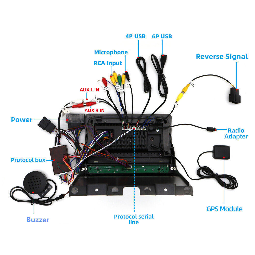 Accessories | Package Included: -1 x Car Radio Stereo With Outer Frame -1 x GPS Cable -2 x USB Cable -1 x AUX Cable -1 x Canbus Box -1 x RCA Cable -1 x Camera Input Cable -1 x Camera Adapter Cable -1 x Radio Adapter Cable -1 x Buzzer -1 x User 's manual |