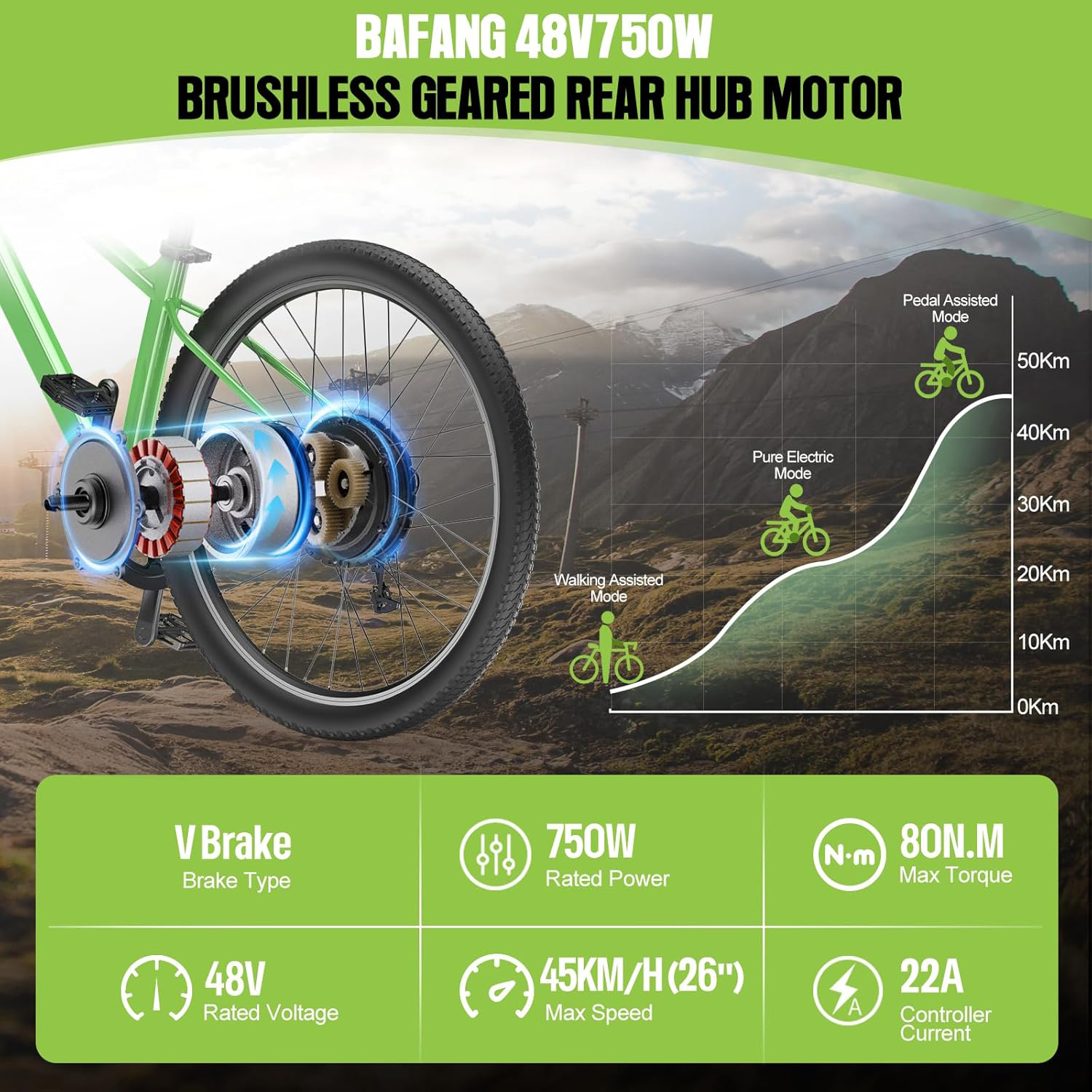 ① Max Torque: With a maximum torque of 80N.m, this 750W motor delivers strong and efficient power, providing ample support for your cycling efforts.