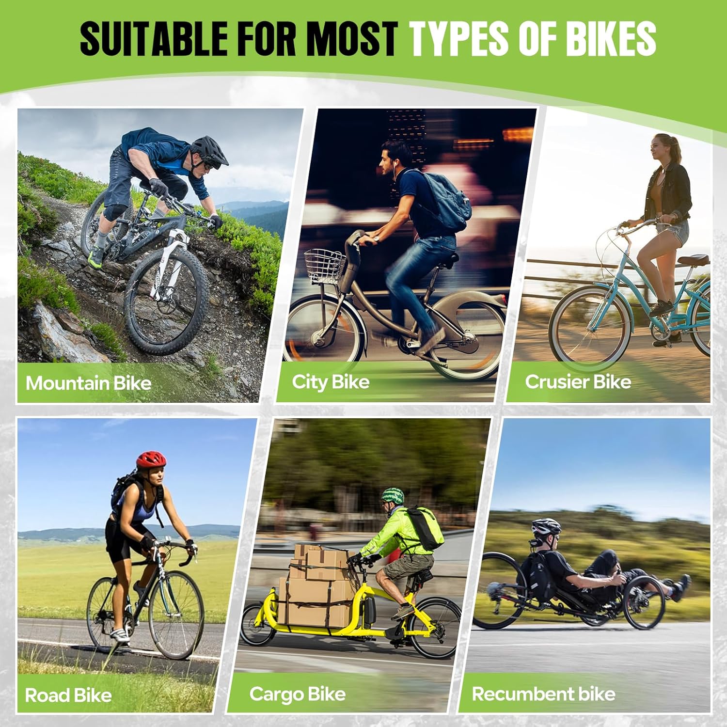 ② Tire Size Range: It supports tire sizes from 1.5" to 2.4", accommodating various types of bikes, from city cruisers to mountain bikes.