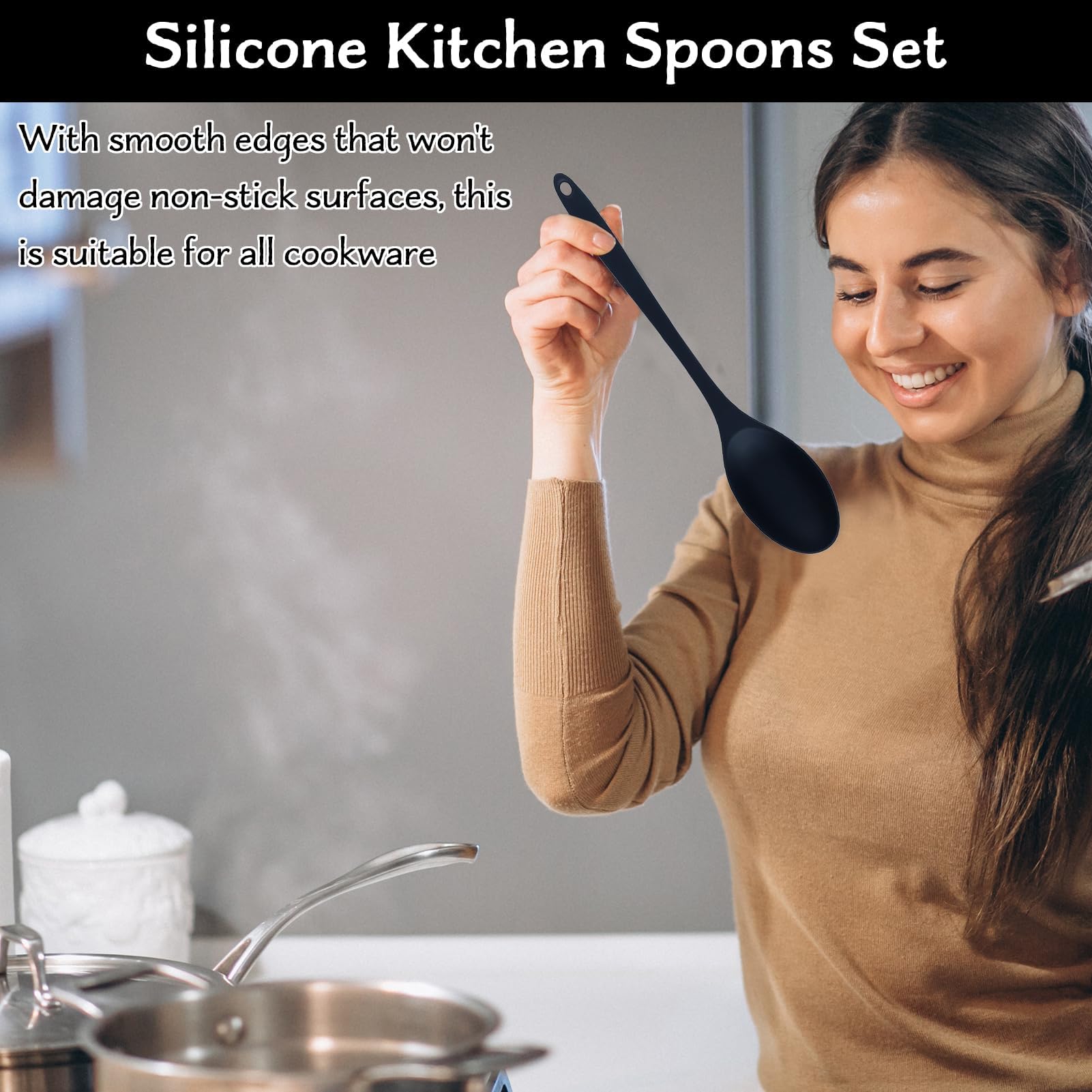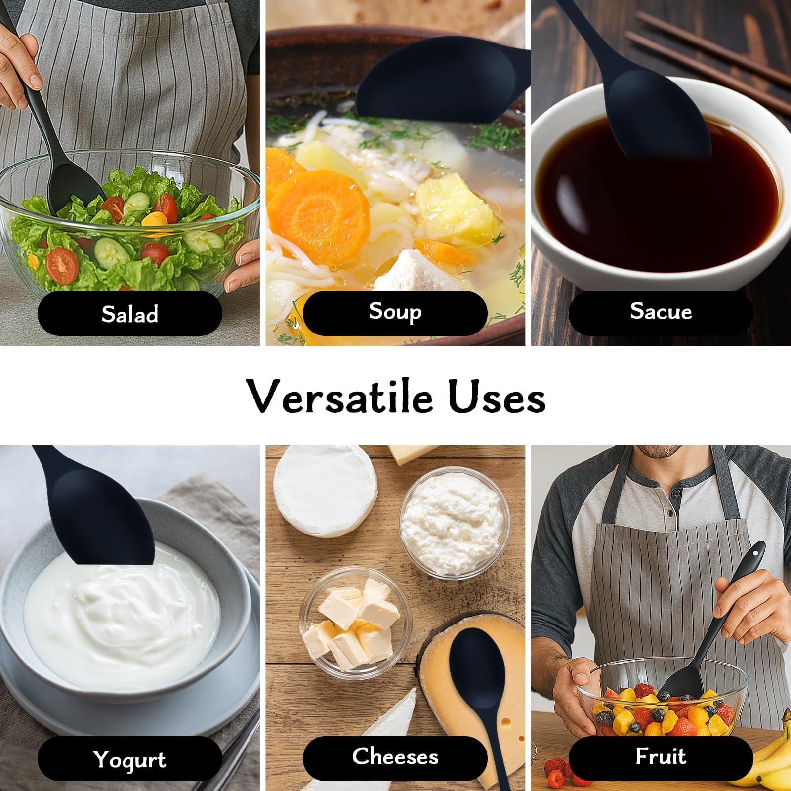 Materiale di alta qualità: questi cucchiai da cucina sono realizzati in silicone privo di BPA e resistente allo scolorimento e alla deformazione. Sono resistenti al calore e sicuri per qualsiasi compito in cucina.