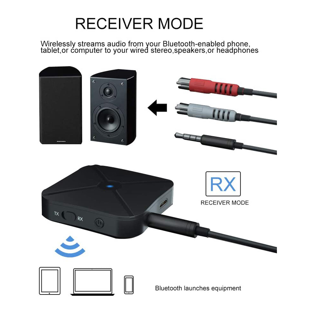 2. Then turn on the receiver device (BT speaker, BT headset and other BT enabled audio system ) and wait a few seconds. The device will connect with the BT transmitter automatically.